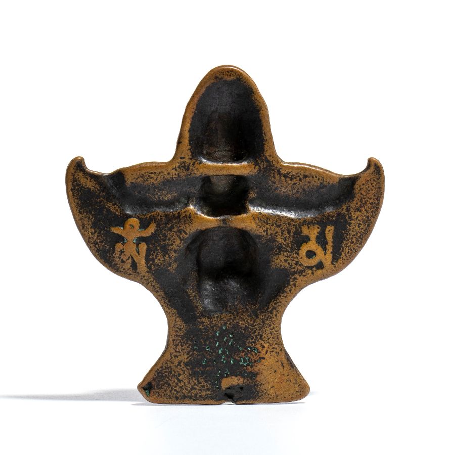 Ornemento pendente buddista raffigurante Garuda in bronzo dorato.