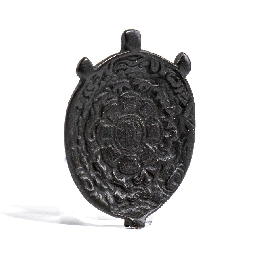Ornamento pendente decorato con simboli di Bagua e Jiuong in bronzo legato.