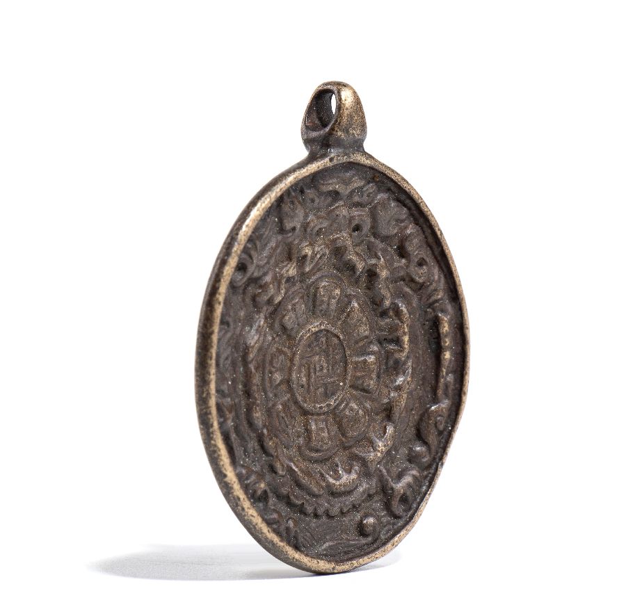 Ornamento pendente decorato con simboli Bagua e Jiugong in bronzo legato.