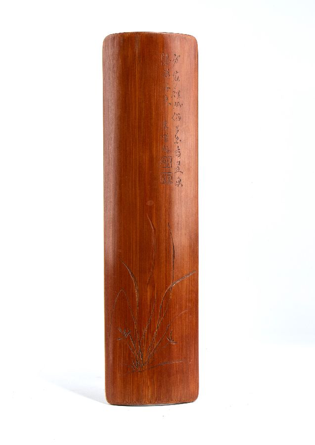 Porta-pennello in bambù intagliato con testi letterari del XIX secolo (utensile ausiliario per la scrittura dei letterati antichi).