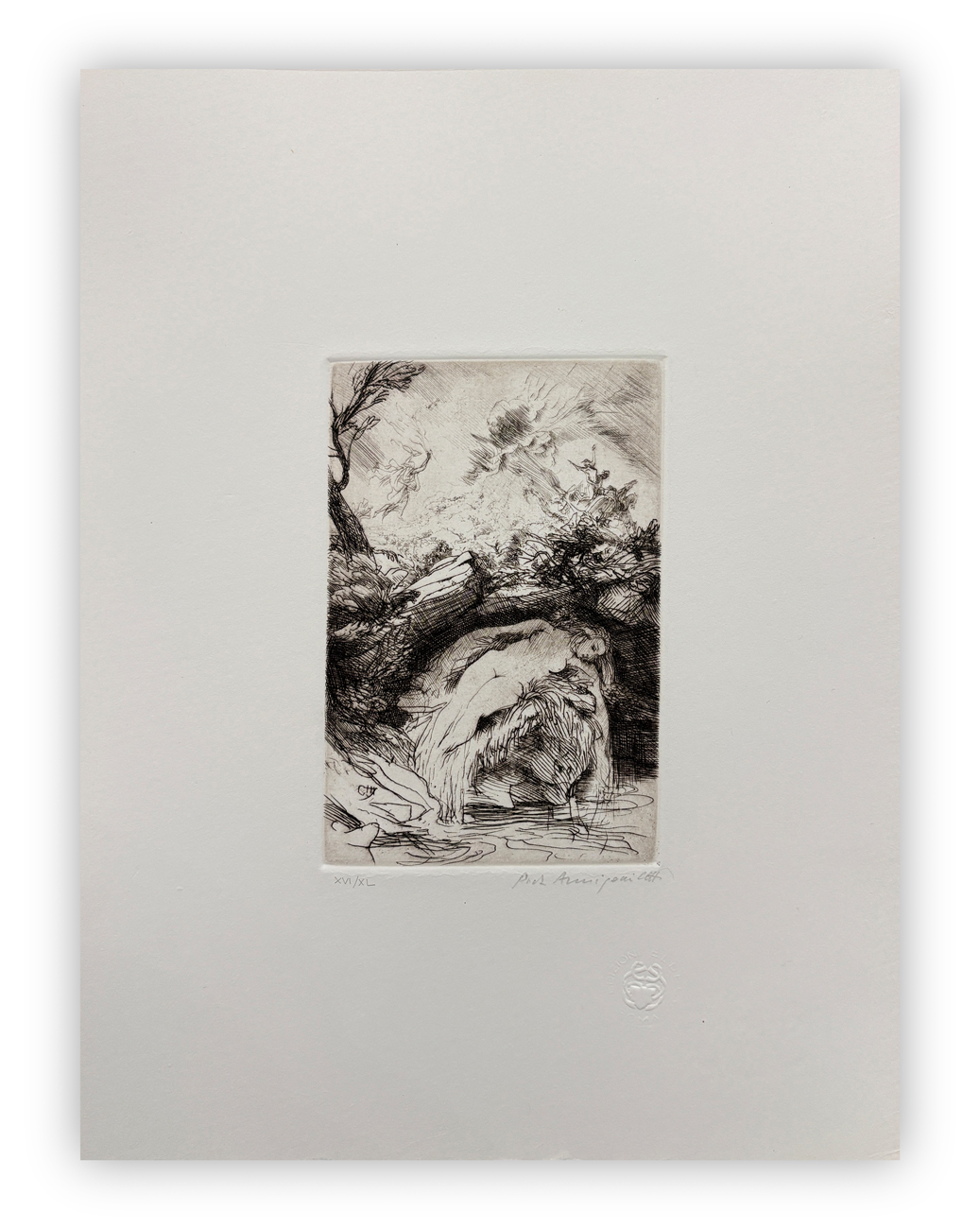 Firma e numerazione (Esemplare XVI/L) a matita al fronte