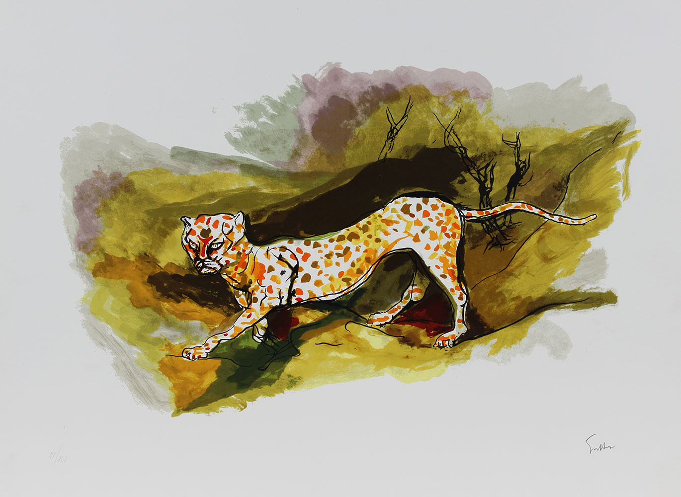 Guttuso Renato Ghepardo serigrafia su carta, cm. 50x70, es. 21/150 firmata in basso a destra senza cornice