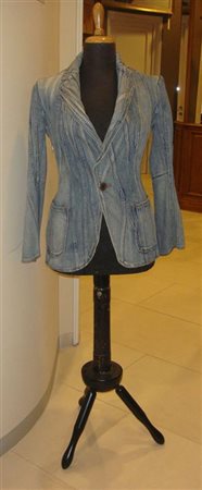 JUNYA WATANABE Giacca tre quarti, in jeans sbiadito, chiusura ad un bottone, manica leggermente svasata, doppie tasche, anni '90 Tg. M JUNYA WANTANABE 1990's faded jean jacket with one button closure, appliquè pockets and bell sleeves size: M