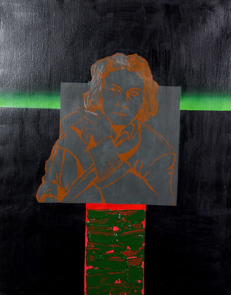 Frasnedi Alfonso Ritratto del Filosofo Bernard-Henry Levy tecnica mista su tela, cm. 100x80 firmata al retro, opera pubblicata sulla monografia "Alfonso Frasnedi, La Galleria del Tempo", Edizioni Spirali/Vel, Milano, 2011