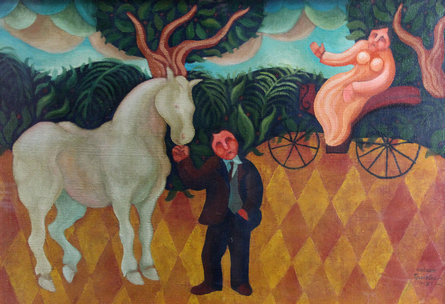 Tranchino Gaetano Cavallo Bianco, 1971 olio su tela, cm. 70x98 firmato e datato in basso a destra, firmato e intitolato al retro