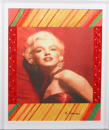 Ferrari Enzo Marylin I tecnica mista su tavola entro teca di plexiglass, cm. 60x50 firmata in basso a destra, firmata e intitolata al retro, timbro dell'Associazione Nazionale Amici de "Il Quadrato" al retro, certificato di autenticità dell'artista su fotografia