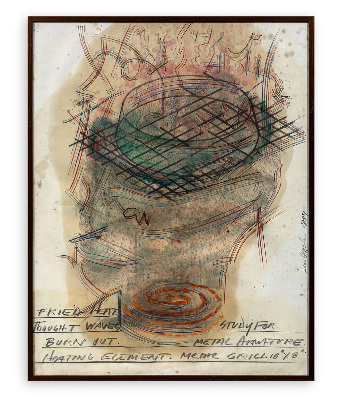 DENNIS OPPENHEIM (1938-2011) - Fried Head, Thougt Waves, Burn out Heating Element, Study for Metal Armature, Metal Grill 18’ x 8’, 1984