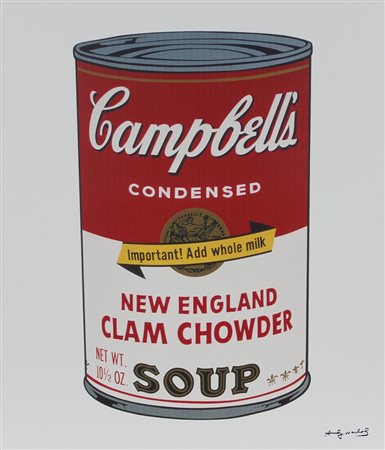 Warhol Andy (D'Aprés) Campbell's Soup riproduzione su lastra in alluminio, cm. 65x55 firmata in lastra in basso a destra senza cornice