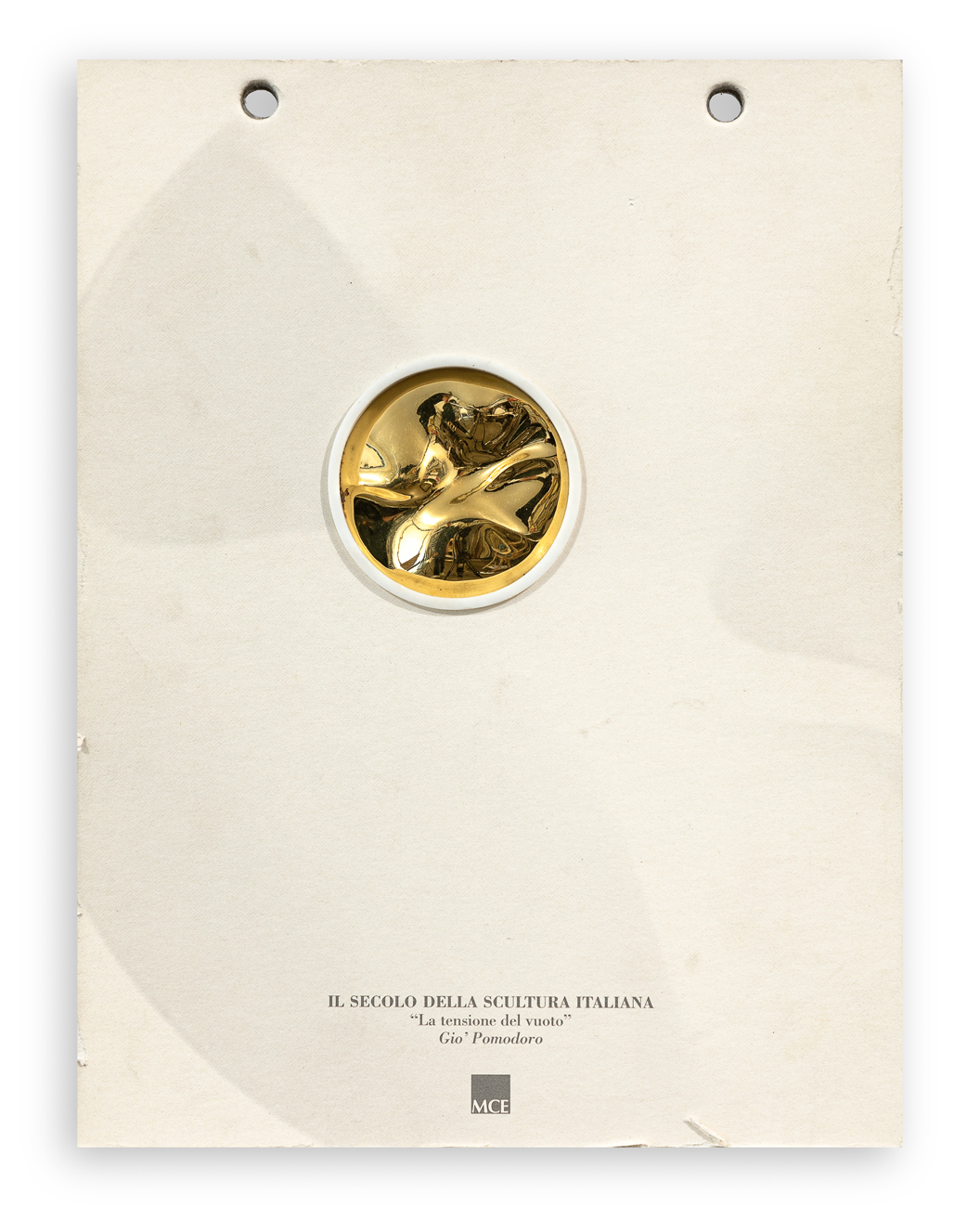 Cofanetto contenente 8 medaglie realizzate in metalli diversi da Arnaldo Pomodoro, Francesco Somaini, Giuseppe Uncini, Gio' Pomodoro, Giuseppe Spagnulo, Mauro Staccioli, Eliseo Mattiacci, Giuseppe Maraniello, ciascuna delle quali recante firma, titolo e numerazione (Esemplari P.A.) incise sullo spessore