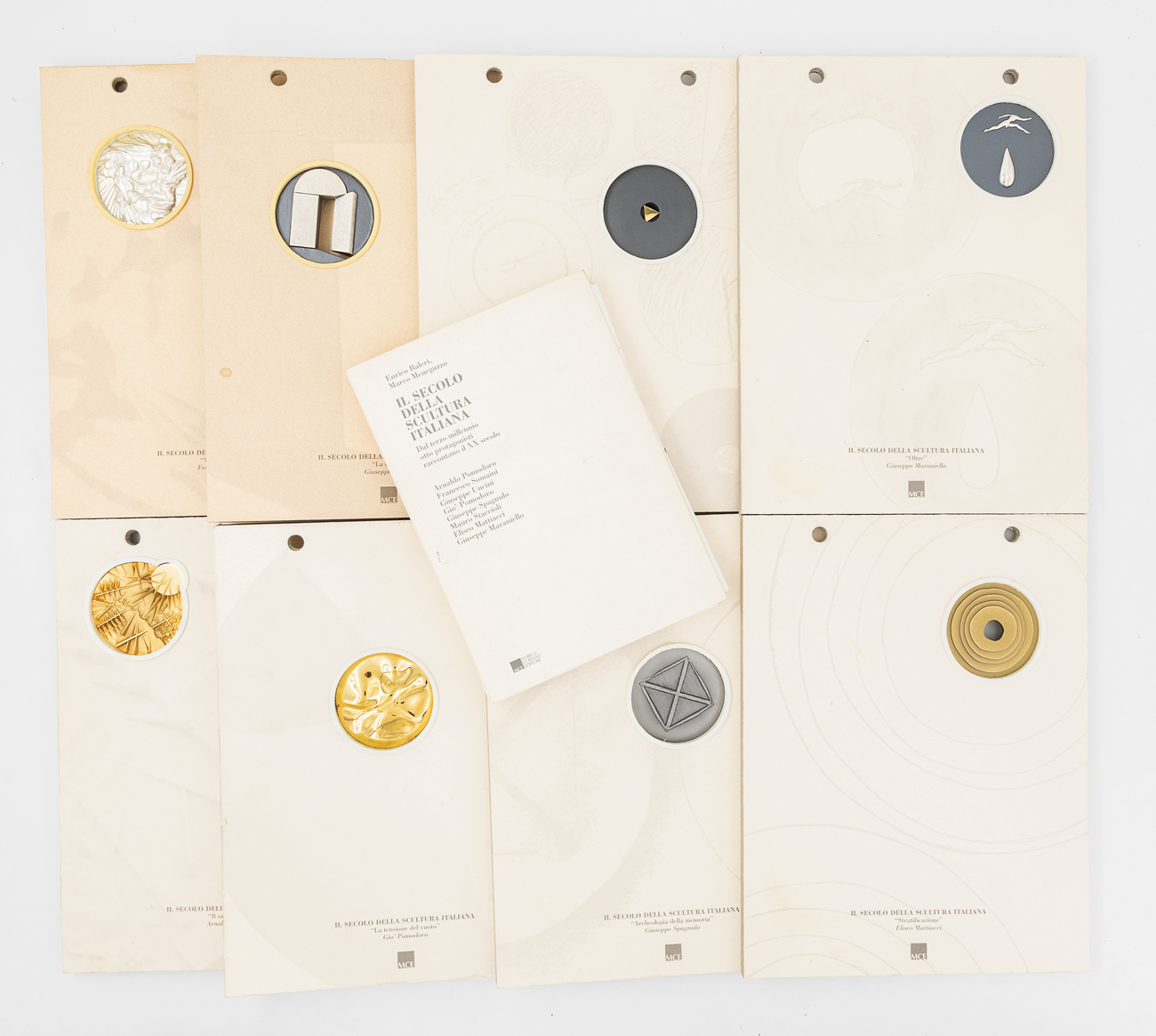 Entro custodia originale completa di libretto di presentazione dell'edizione 'Il secolo della scultura italiana. Dal terzo millennio otto protagonisti raccontano il XX secolo', a cura di Enrico Baleri e Marco Meneguzzo, e singole schede di presentazione delle opere