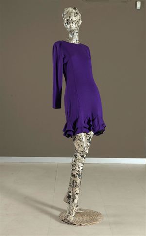 ABITO SARTORIALE Abito colore viola in maglia, girocollo, ruche applicate sul fondo, anni '80 tg. M 1980's purple, longsleeved knit dress with round collar and ruche appliquè at hem size: M