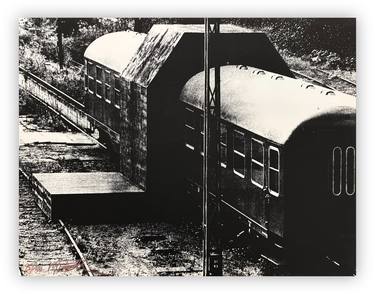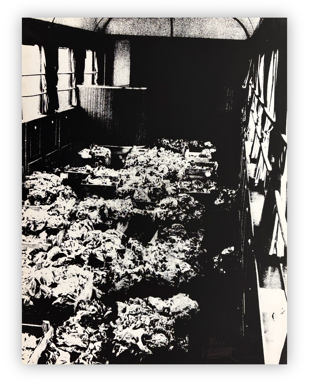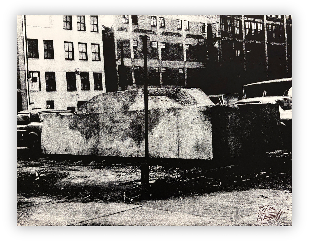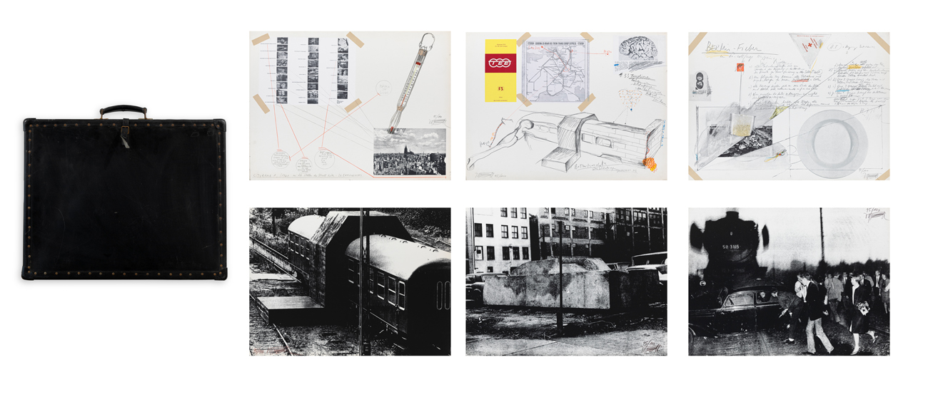 Valigetta contenente 10 litografie in bianco e nero su cartone e 11 serigrafie su cartone, ciascuna recante firma e numerazione (Esemplare 95/100) a matita al fronte