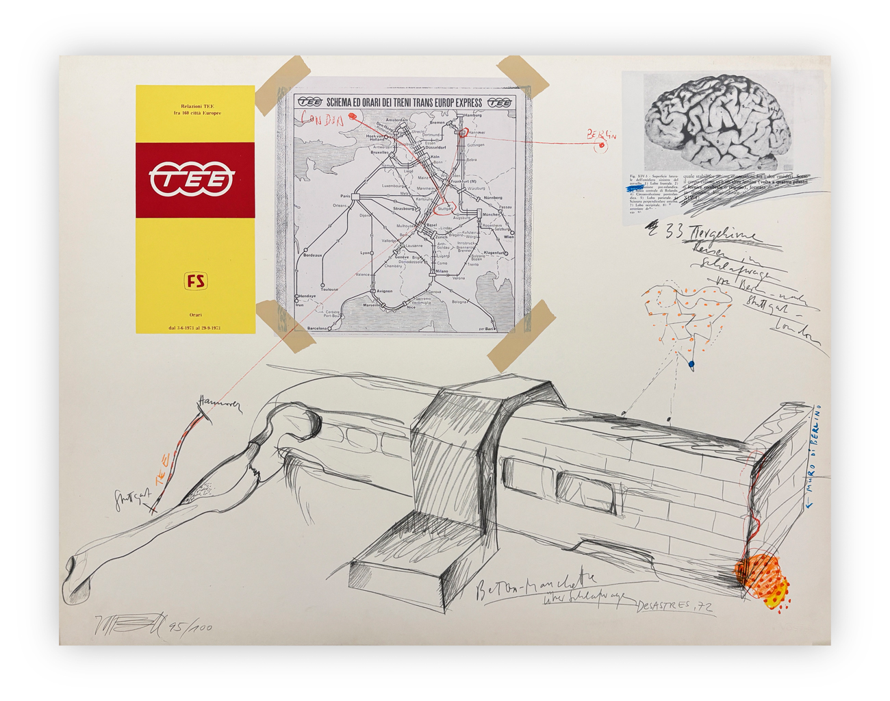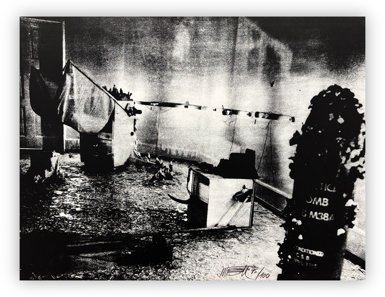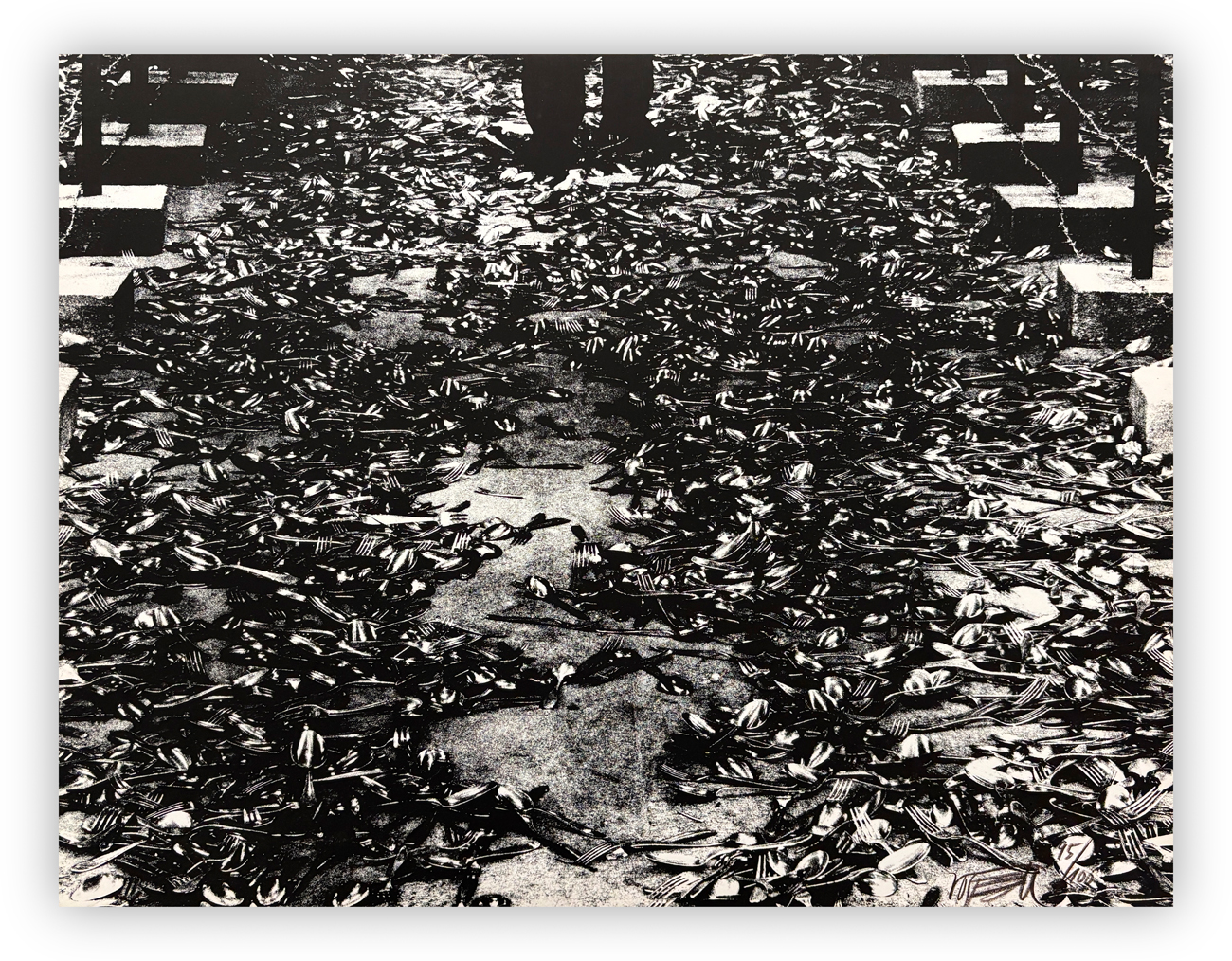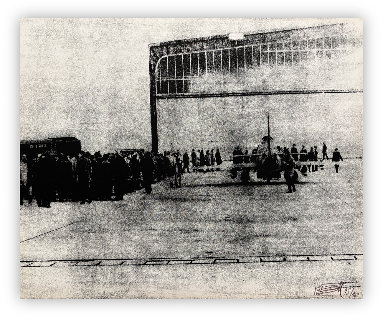 Valigetta contenente 10 litografie in bianco e nero su cartone e 11 serigrafie su cartone, ciascuna recante firma e numerazione (Esemplare 95/100) a matita al fronte