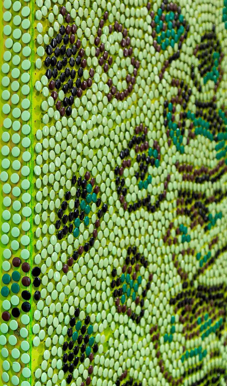 Tecnica mista e puntine colorate su tavola