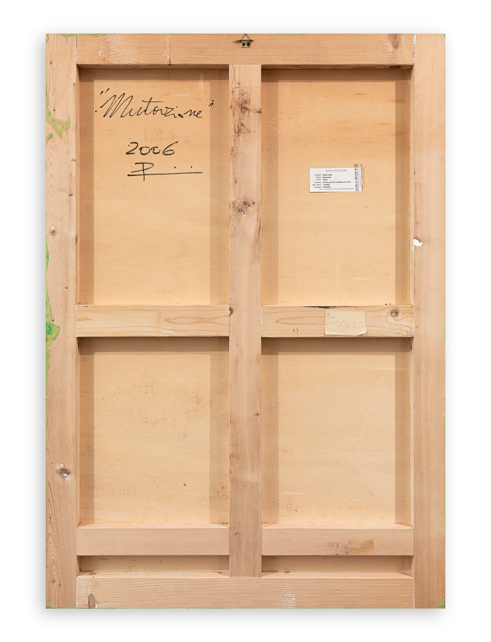 Etichetta della Galleria Valente Arte Contemporanea (SV) al retro