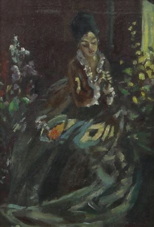 Anonimo Figura femminile olio su tavola, cm. 20x15