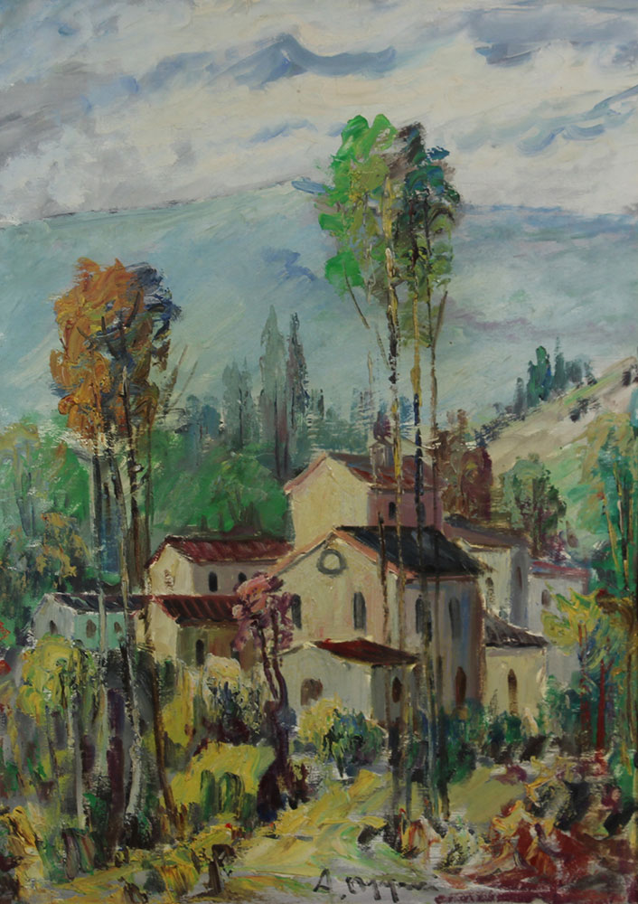 Oppici Aldo Paesaggio olio su tela, cm. 70x50 firmato in basso al centro, firmato e intitolato al retro