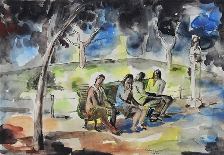 Vagarini Cesare Al Parco china e inchiostri acquerellati su cartoncino, cm. 35x50 firmata in basso al centro senza cornice