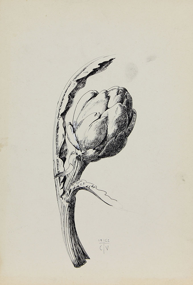 Vagarini Cesare Carciofo, 1962 china su cartoncino, cm. 35,5x25 siglata e datata in basso al centro senza cornice