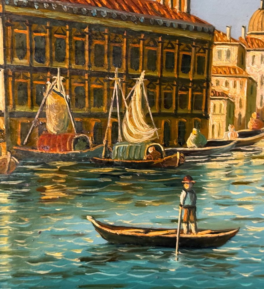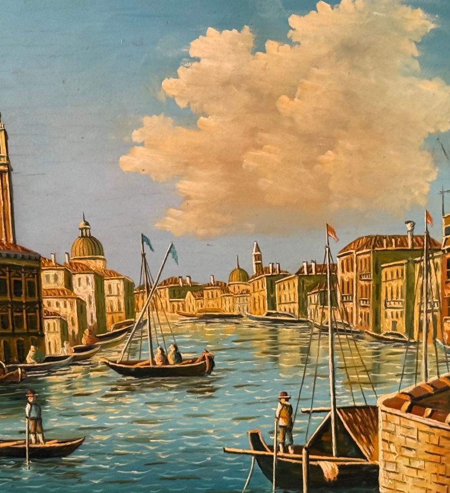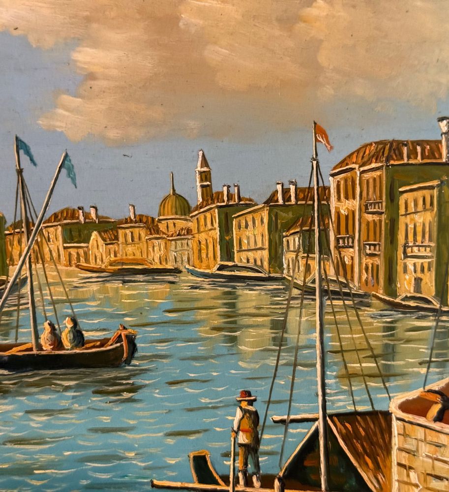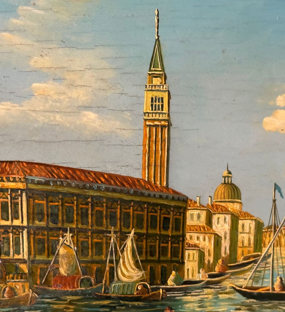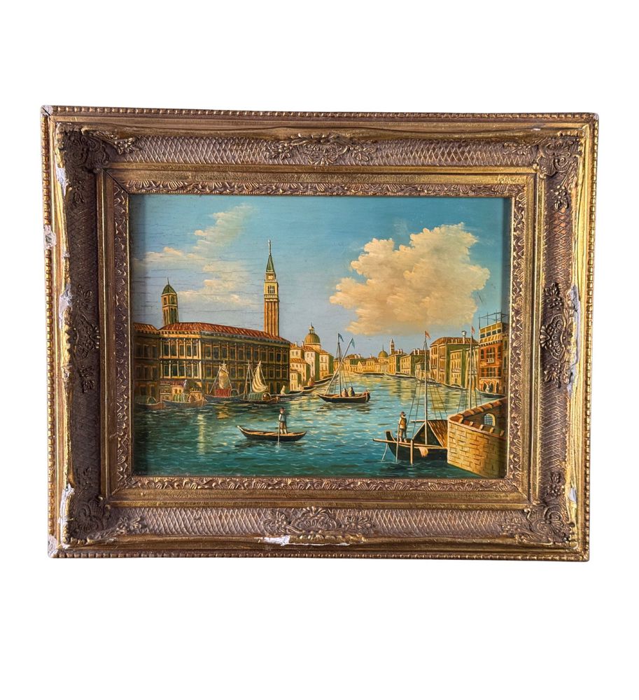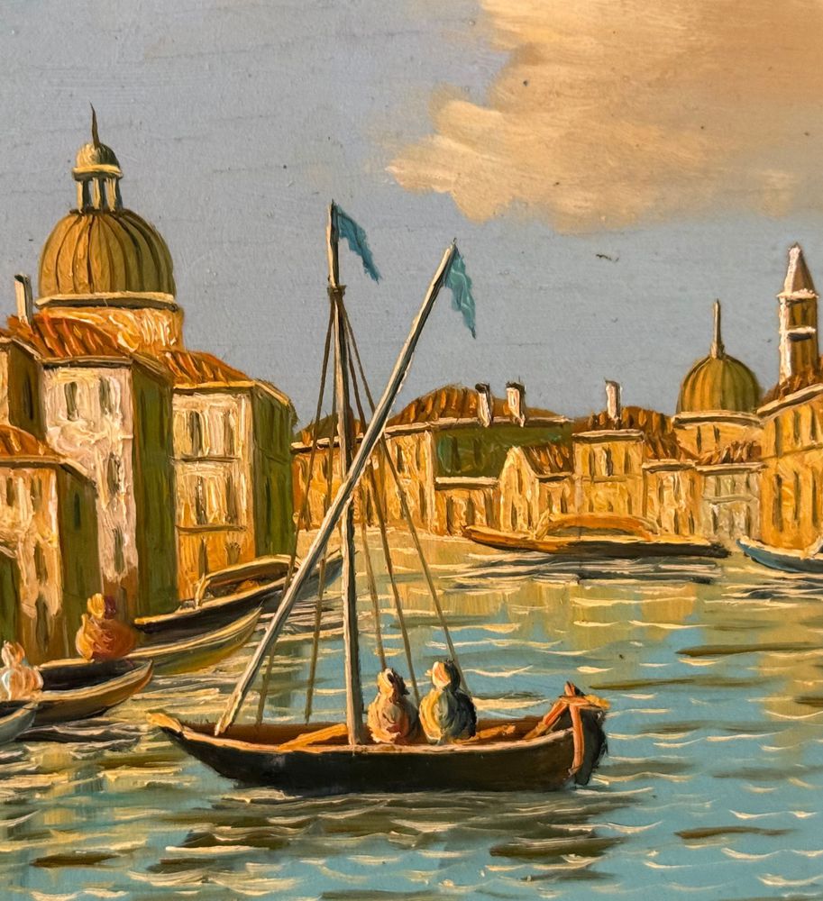 Dipinto olio su tavola, periodo XX secolo, scuola Italiana, raffigurante Venezia, nella maniera di Canaletto. Dimensioni compreso cornice: 56x46 cm. Dimensioni interno cornice: 30x40 cm. Artista anonimo. Opera in buone condizioni. Cornice offerta in omaggio da restaurare.