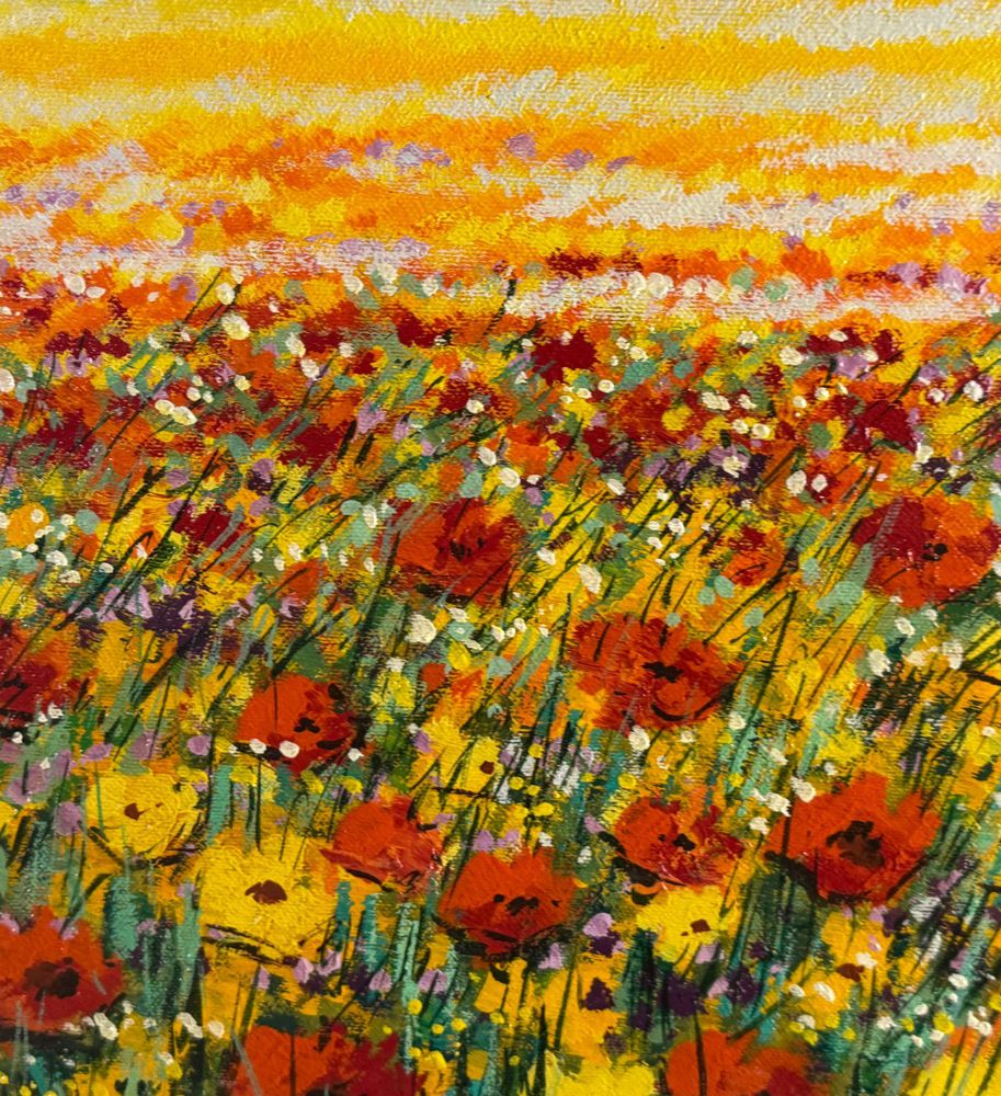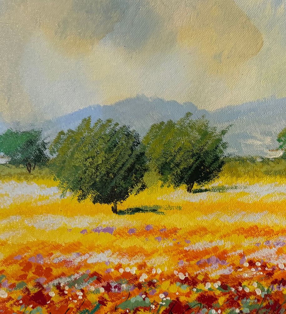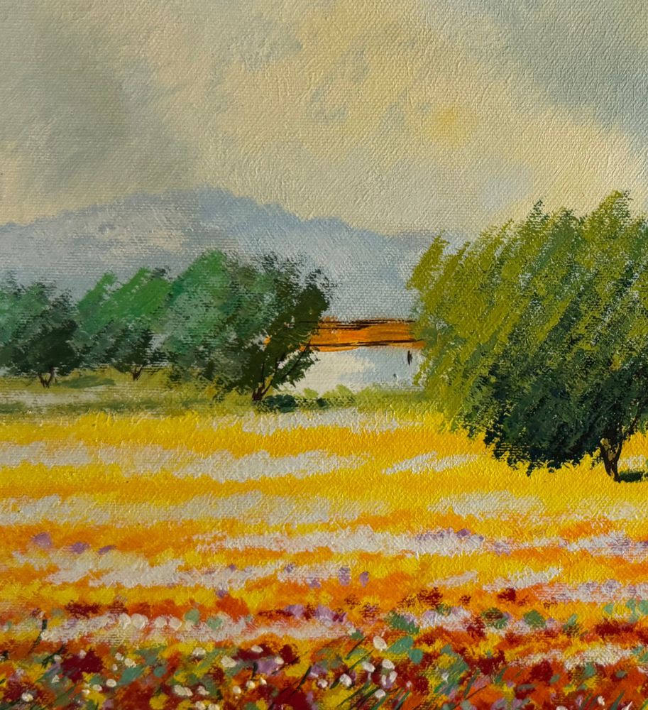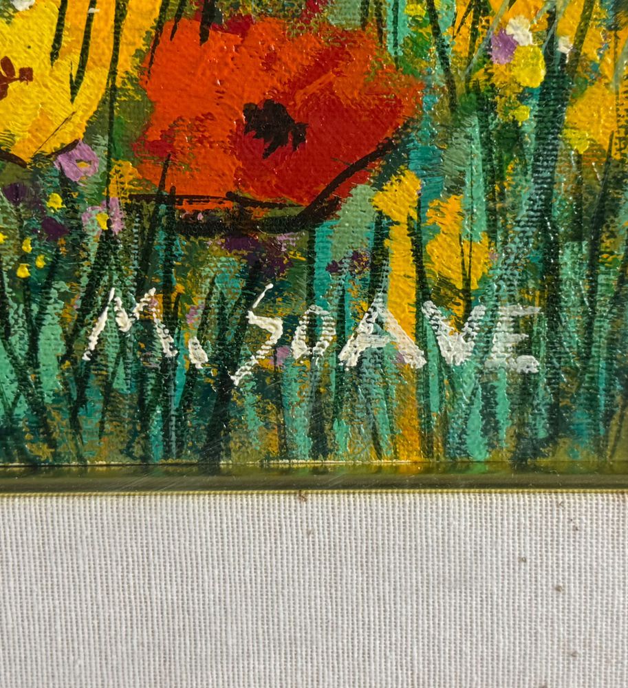 Dipinto olio su tela, periodo XX secolo, scuola Italiana, raffigurante Paesaggio con campo fiorato. Dimensioni compreso cornice: 74x94 cm. Dimensioni interno cornice: 50x70 cm. Firmato in basso a destra Mario Soave (1955 -). Opera in buone condizioni.