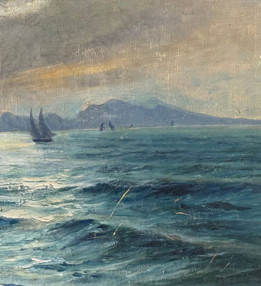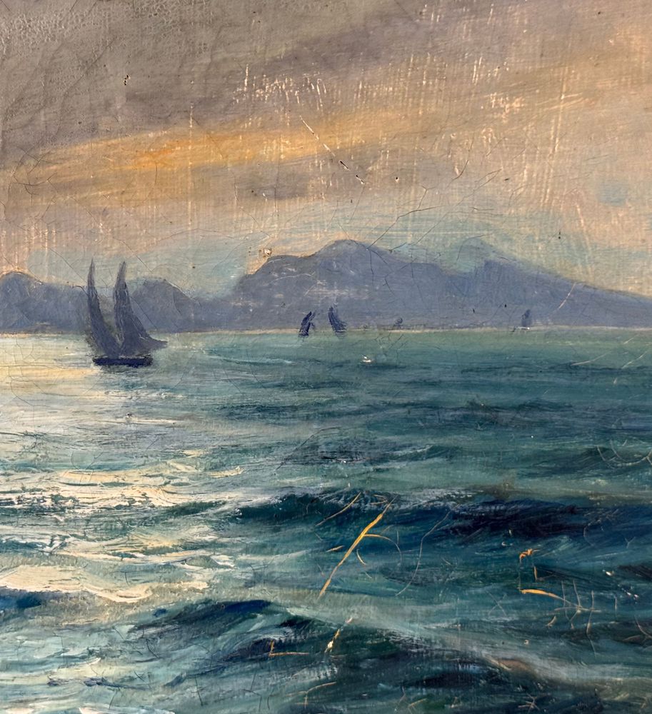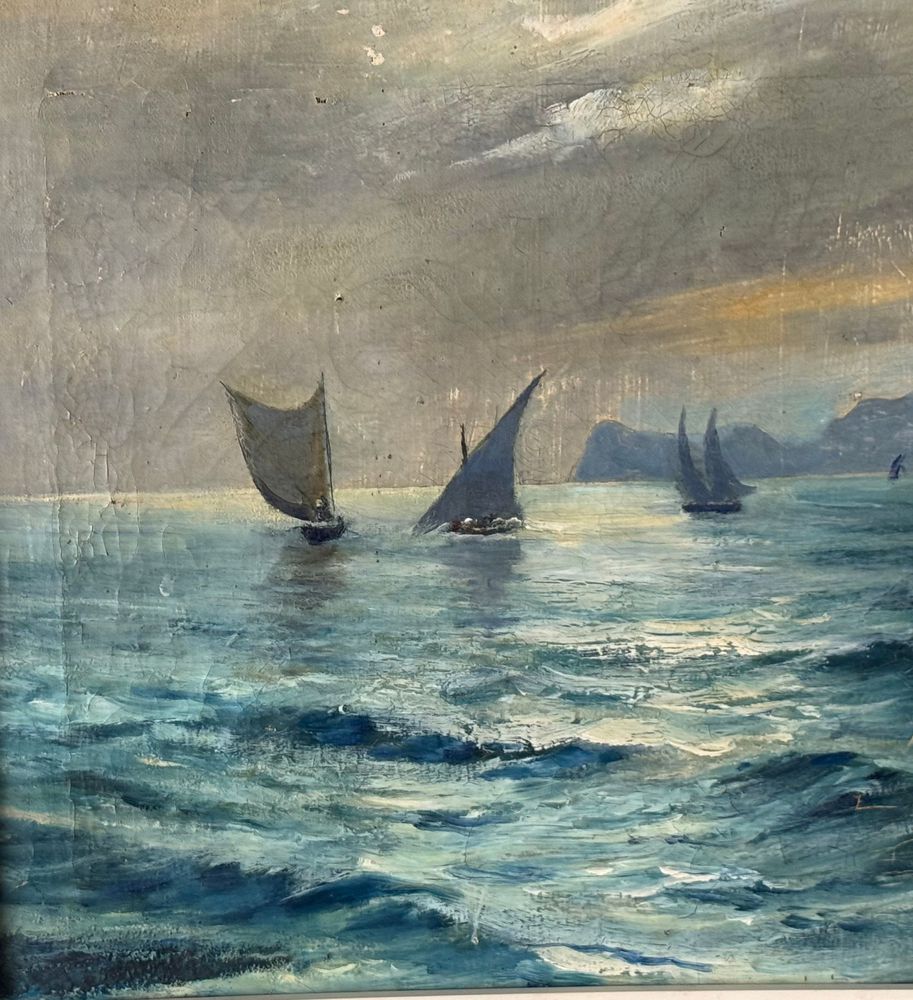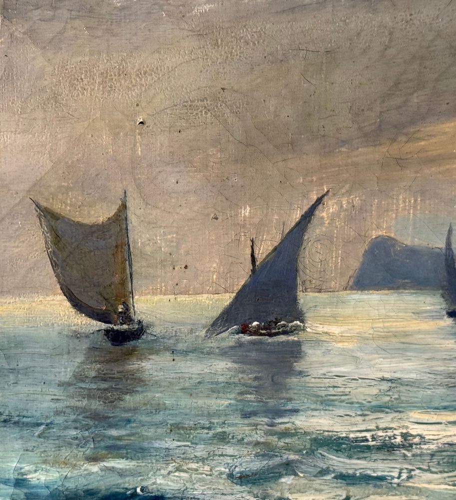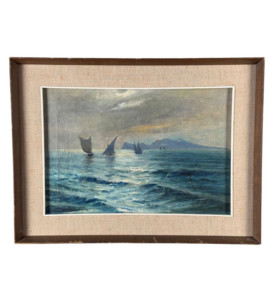 Dipinto olio su tela, periodo primi anni del XX secolo, raffigurante Marina con barche. Dimensioni compreso cornice: 60x45 cm. Dimensioni interno cornice: 46x31 cm. Da artista anonimo. Opera in buone condizioni con lievi segni di vissuto come da foto allegate.