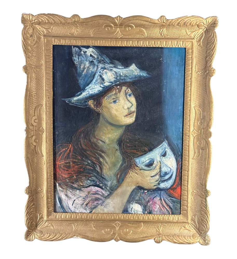 Dipinto olio su pannello, scuola Italiana, periodo XX secolo, raffigurante Ritratto di donna con maschera. Dimensioni compreso cornice: 56x68 cm. Dimensioni interno cornice: 40x53 cm. Da artista anonimo. Opera in buone condizioni con lievi segni di vissuto come da foto allegate.