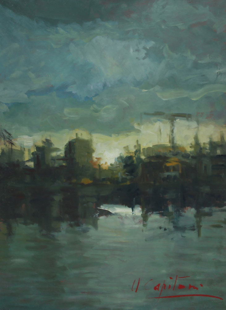 Capitoni Paesaggio olio su faesite, cm. 40x30 firmato in basso a destra
