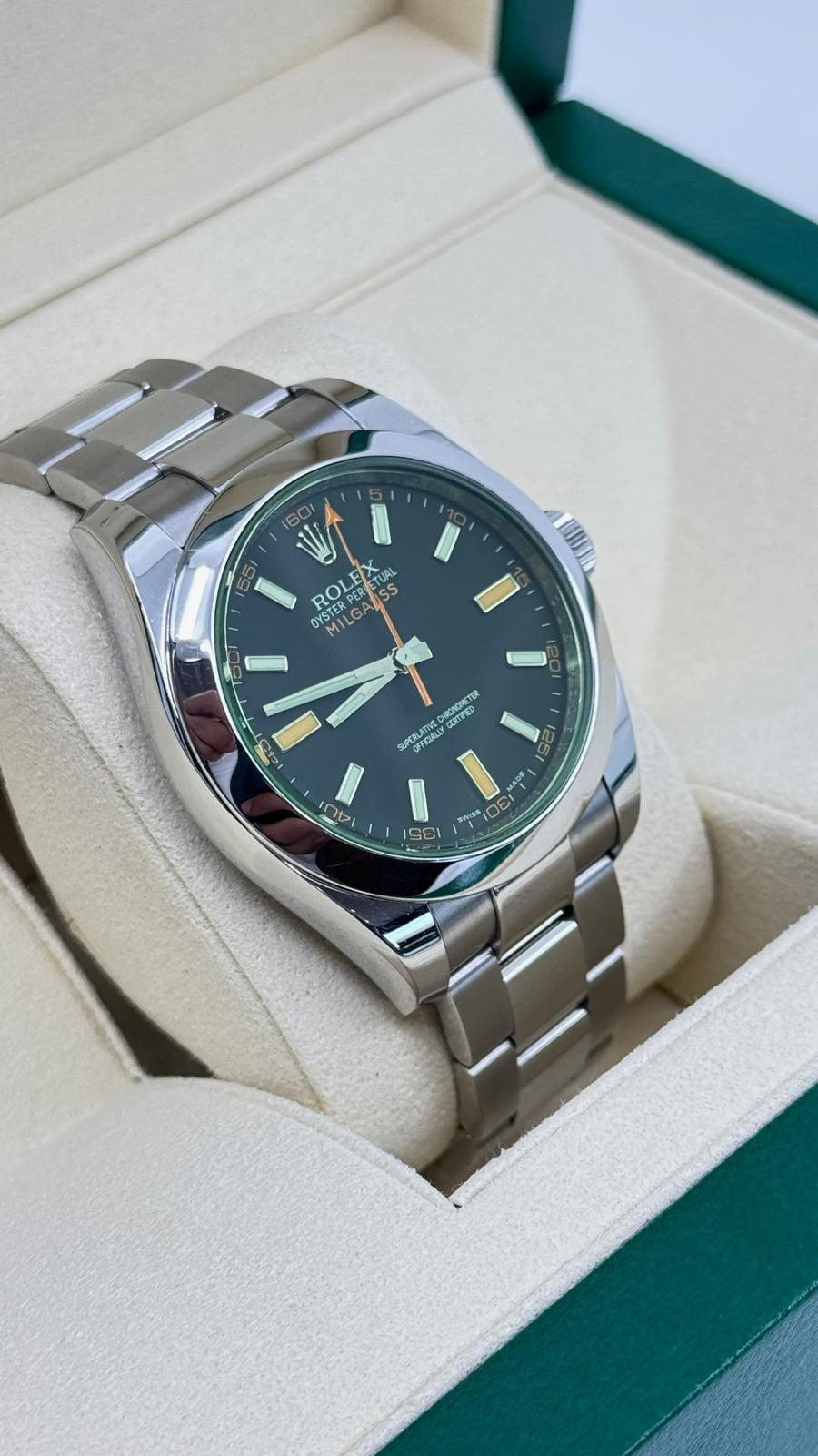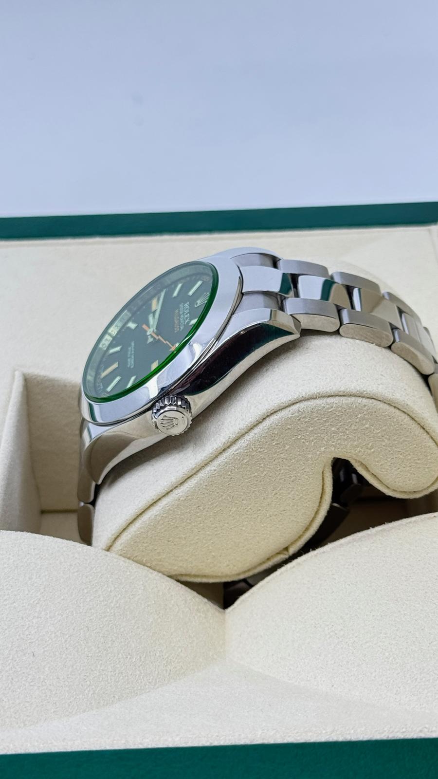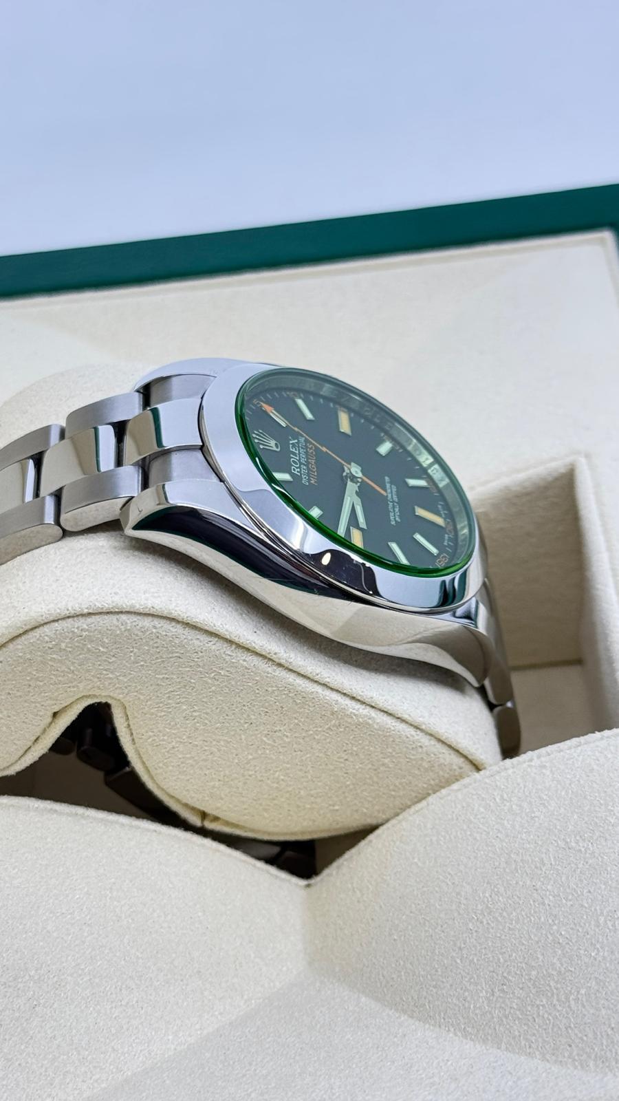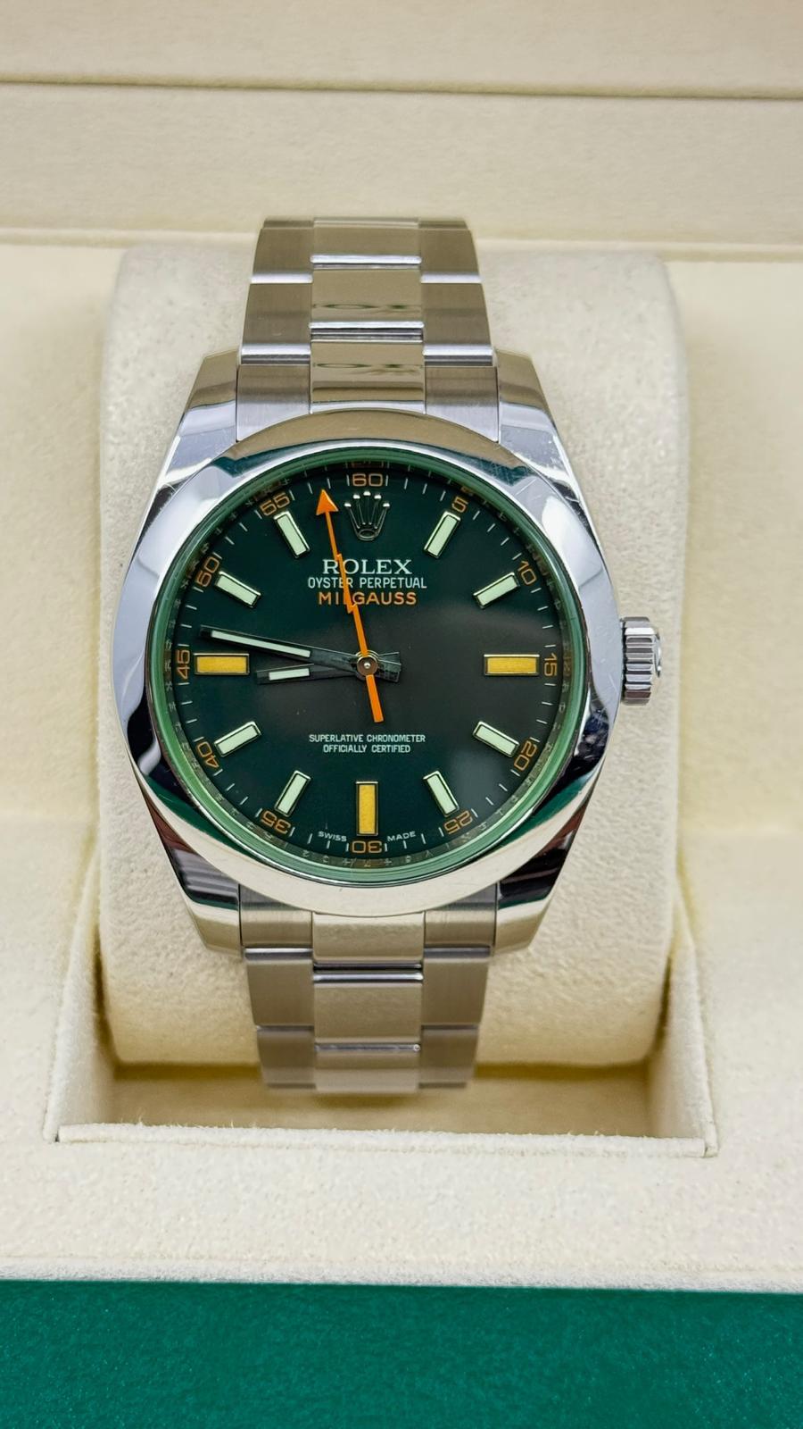 Marca Rolex Modello (Orologio) Milgauss Numero di referenza 116400GV Carica Automatico Materiale della cassa Acciaio Materiale cinturino Acciaio Anno di produzione approssimativo 2011 documenti originali Rolex, no box Materiale della cassa Acciaio Diametro 40 mm Impermeabile 10 ATM Materiale lunetta Acciaio Vetro Vetro zaffiro Quadrante Nero Numeri sul quadrante Senza numeri Cinturino Materiale cinturino Acciaio Colore cinturino Acciaio Chiusura Déployante Materiale chiusura Acciaio Altro - COMMISSIONE D’ASTA 25%