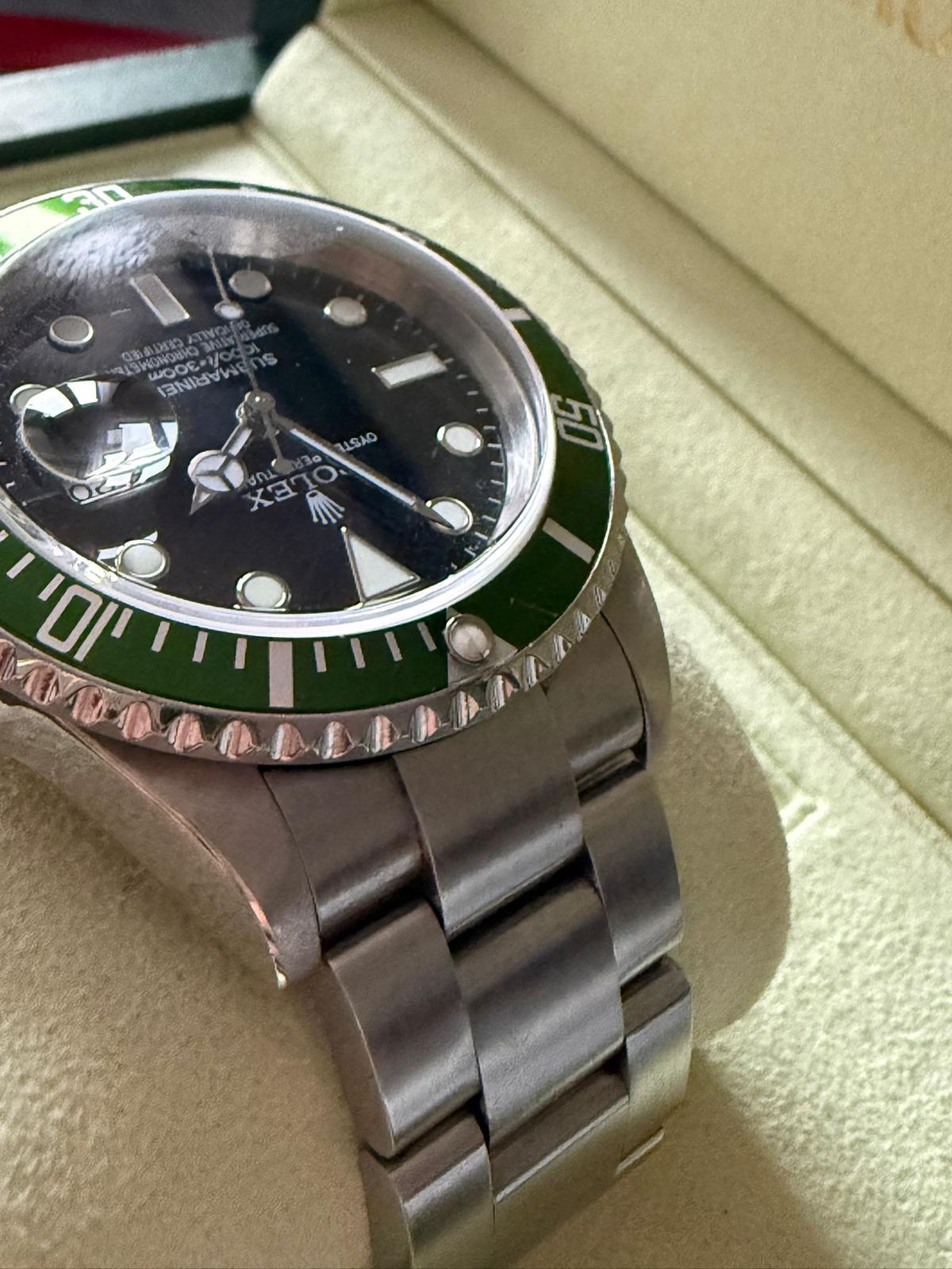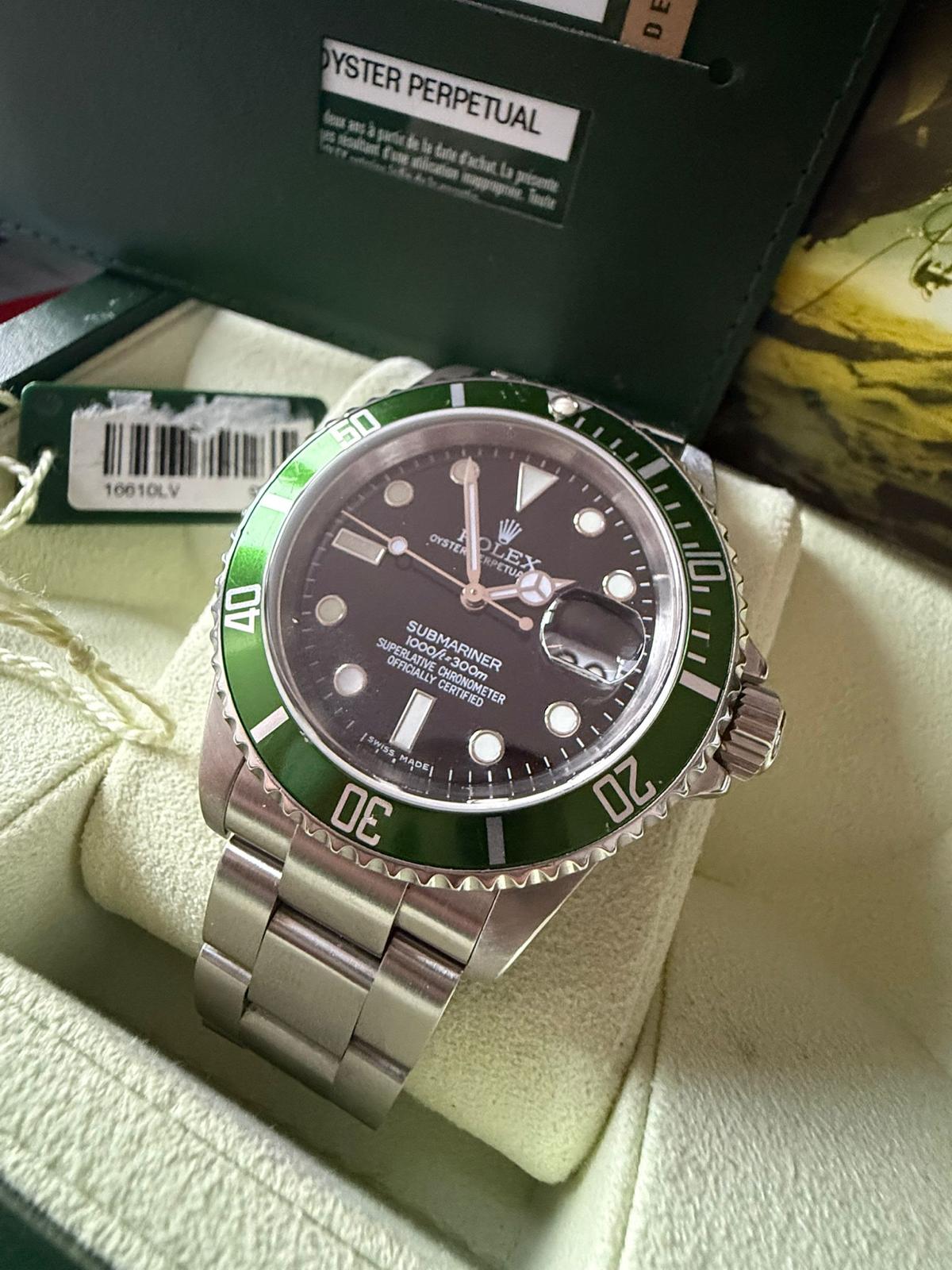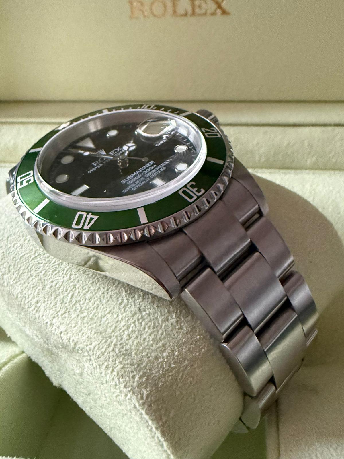 Marca Rolex Modello (Orologio) Submariner kermit Numero di referenza 16610LV Carica Automatico Materiale della cassa Acciaio Materiale cinturino Acciaio Condizione Usato (Ottimo) L'articolo presenta segni di usura lievi, come ad esempio graffi leggeri, ma non percepibili al tatto. documenti originali, no box Materiale della cassa Acciaio Diametro 40 mm Impermeabile 30 ATM Materiale lunetta Acciaio Vetro Vetro zaffiro Quadrante Nero Numeri sul quadrante Senza numeri Cinturino Materiale cinturino Acciaio Colore cinturino Acciaio Chiusura Déployante Materiale chiusura Acciaio Anno 2006 - COMMISSIONE D’ASTA 25%
