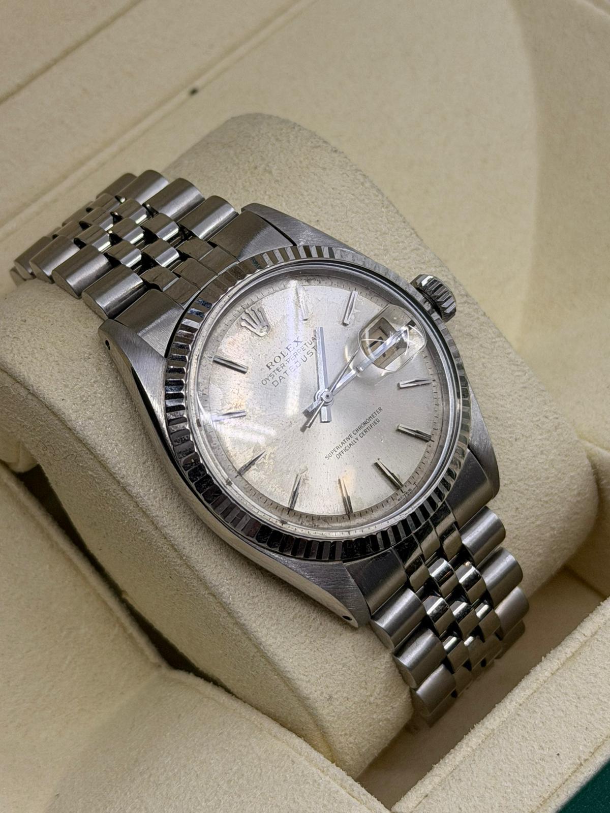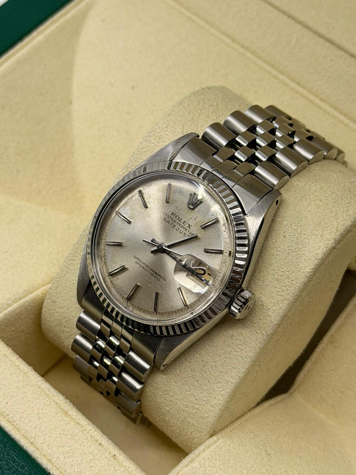 Marca Rolex Modello (Orologio) Datejust 36 Numero di referenza 1601 Carica Automatico Materiale della cassa Acciaio Materiale cinturino Acciaio Anni 70 Condizione Usato (Ottimo) senza scatola originale, senza documenti originali Rolex Materiale della cassa acciaio Diametro 36 mm Impermeabile 10 ATM Vetro Plexiglas Quadrante Argento - COMMISSIONE D’ASTA 25%