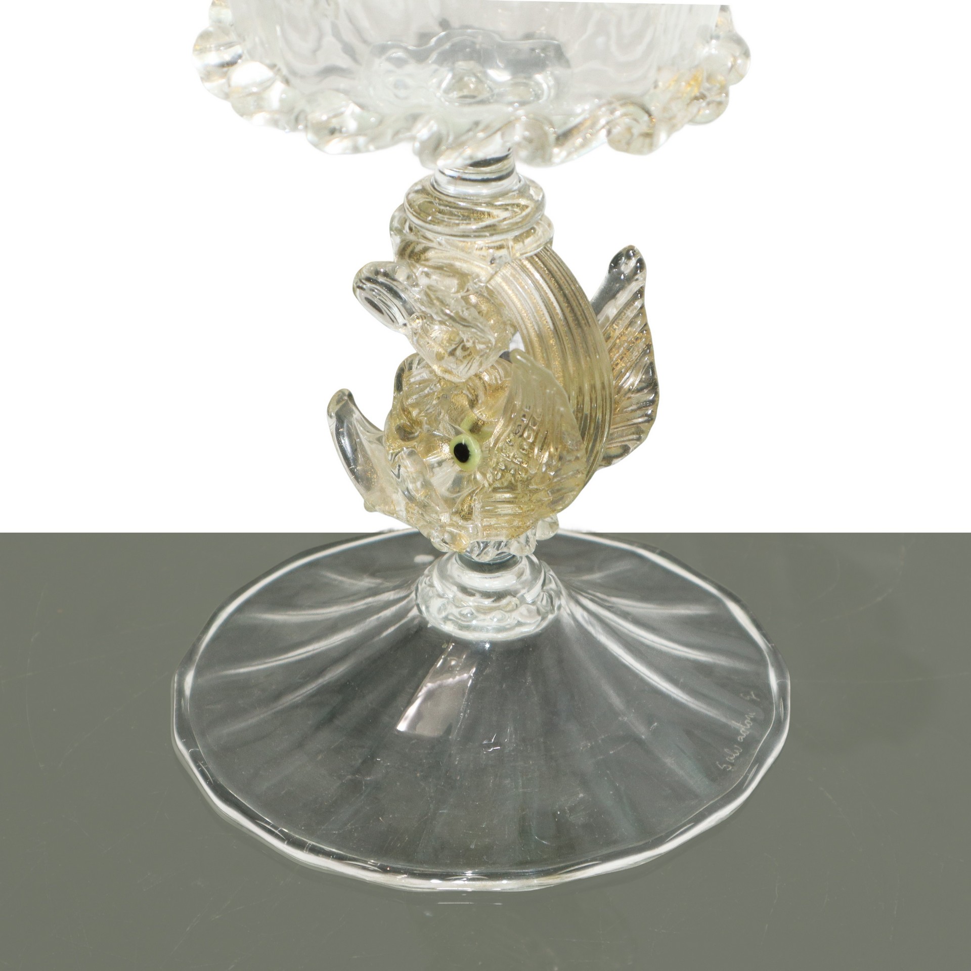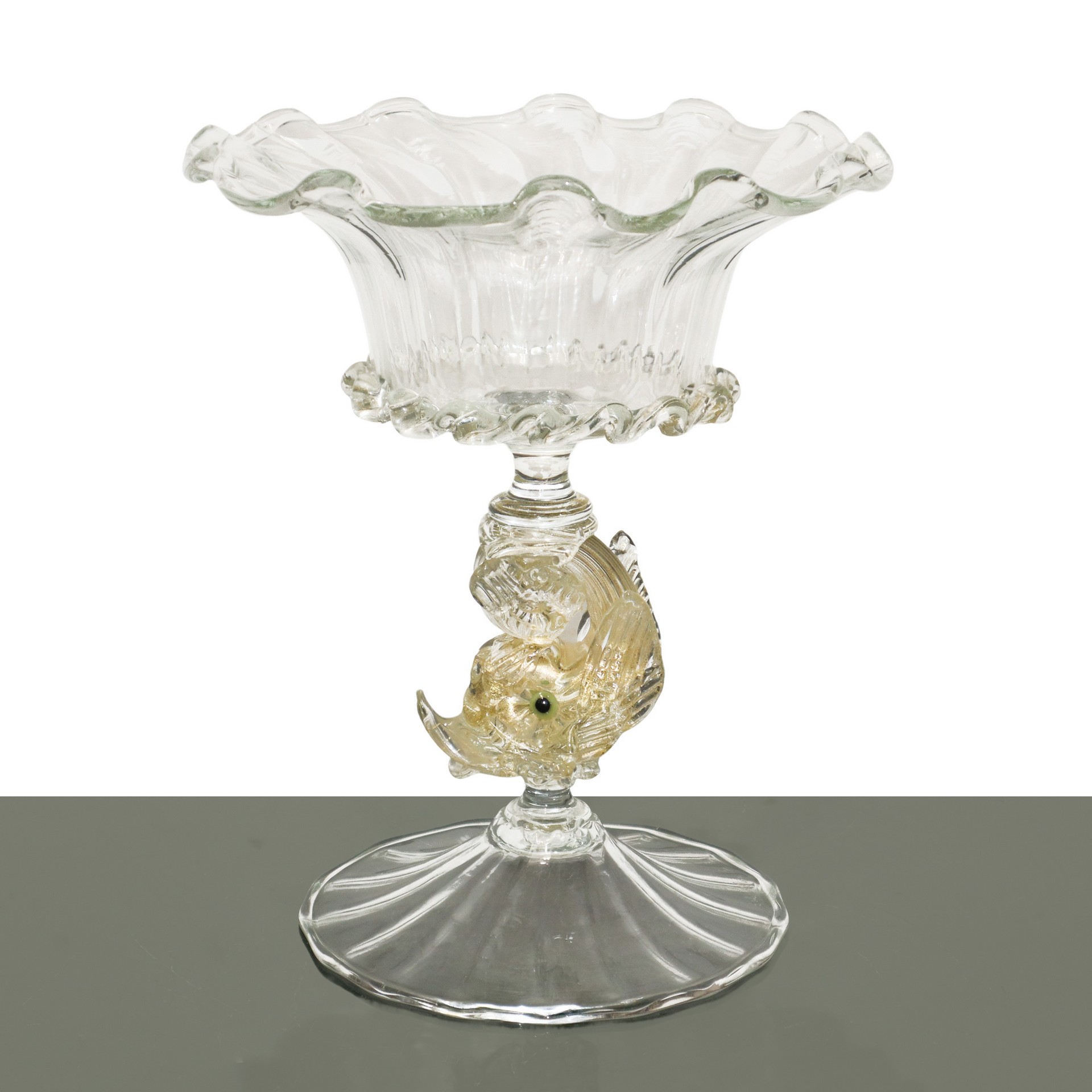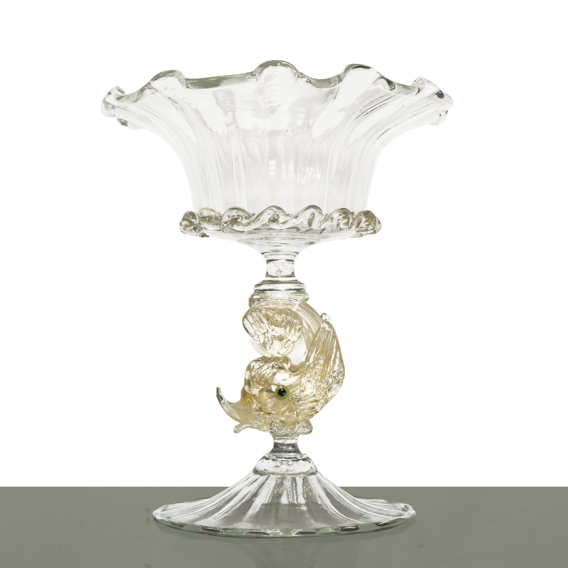 Lot 36 | Manifattura Salvatori - Alzata centrotavola in vetro soffiato di Murano con pesce sulla presa
