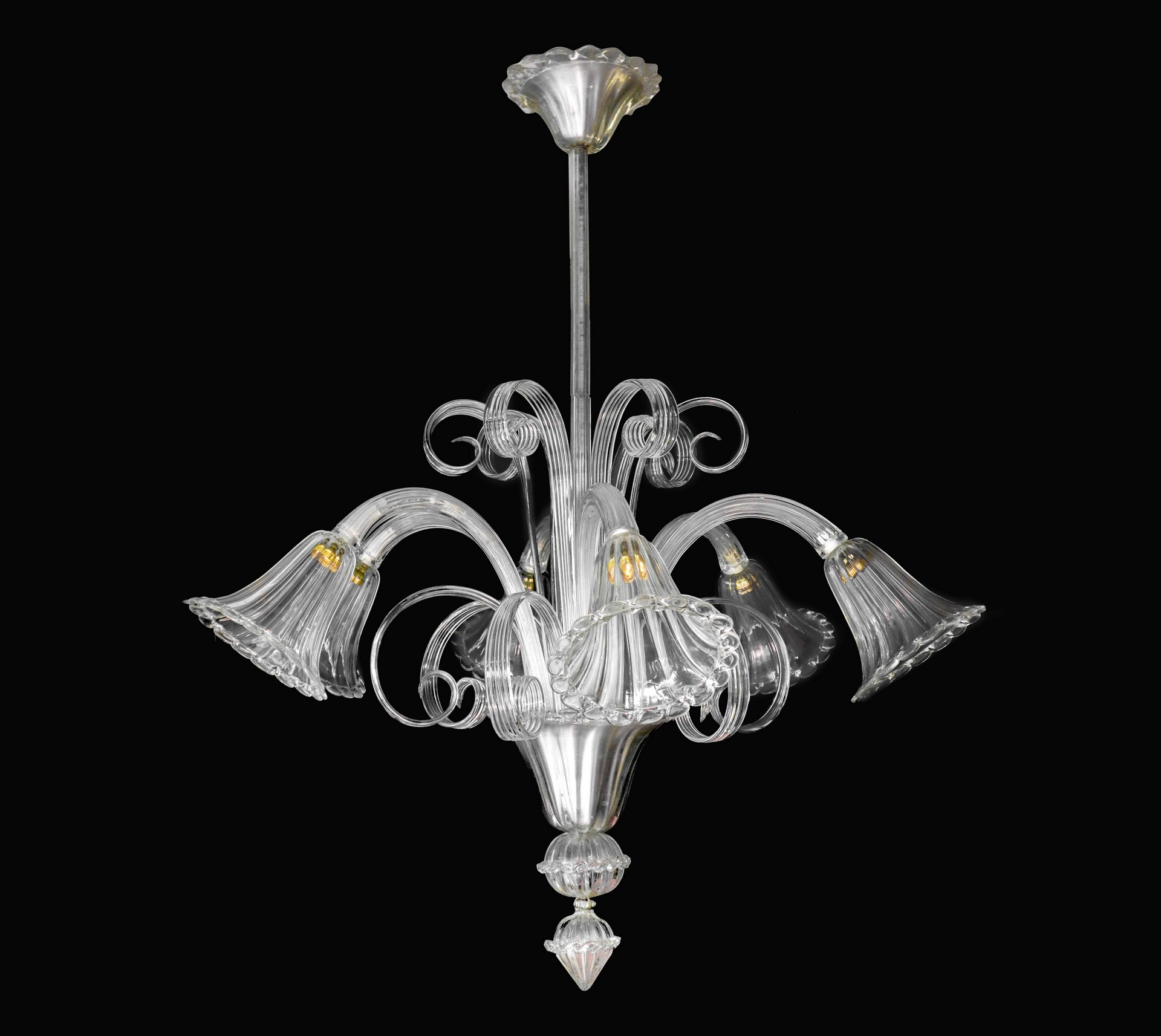 Lampadario in vetro Murano, 1950s/1970s H cm 110 x L cm 100 A sei luci, a campanula