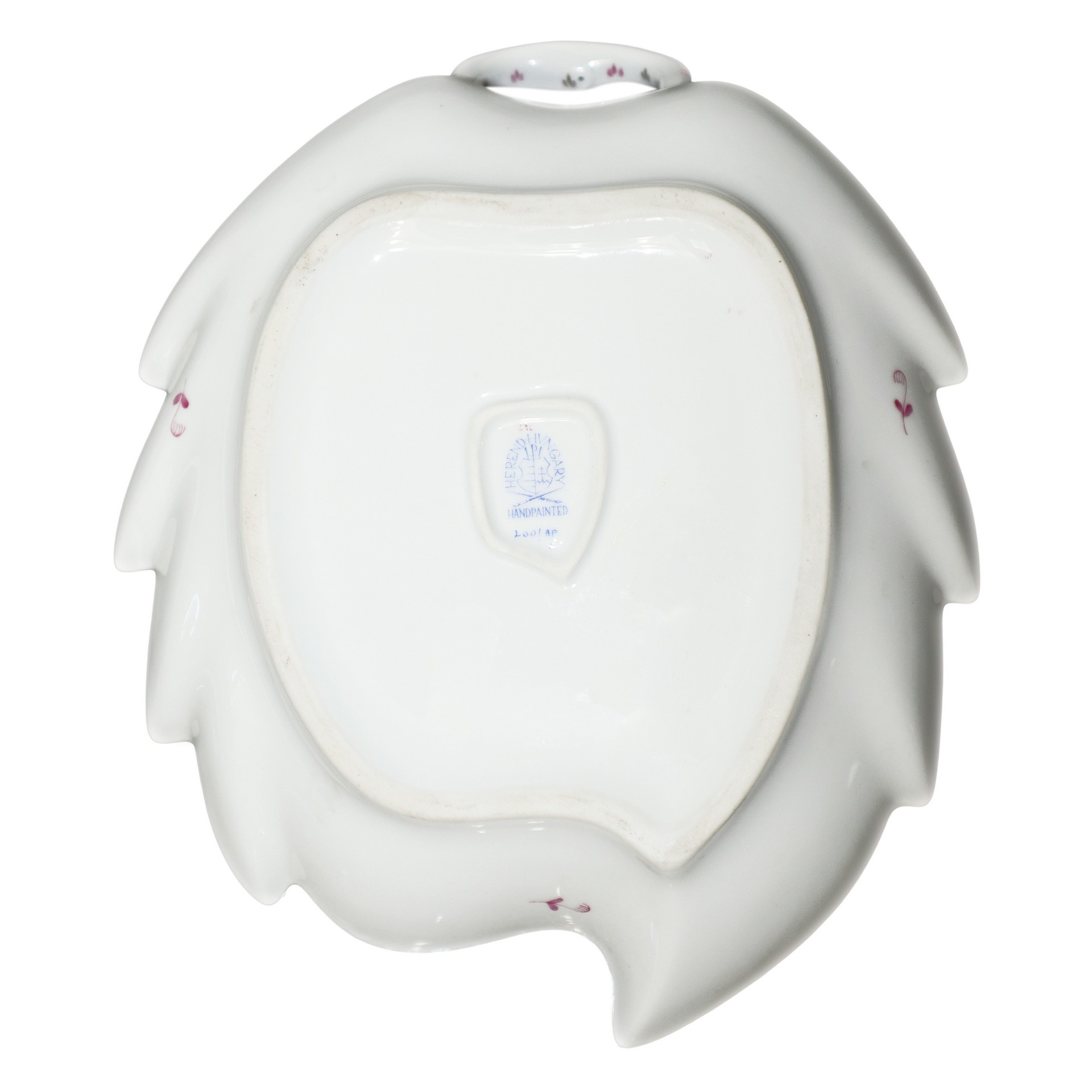 Herend Hungary (Herend 1826) - Foglia in porcellana bianca Herend decoro Apponyi fucsia reale
