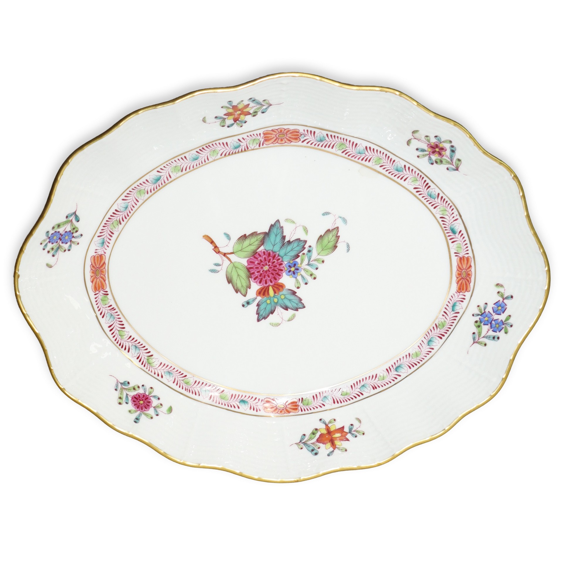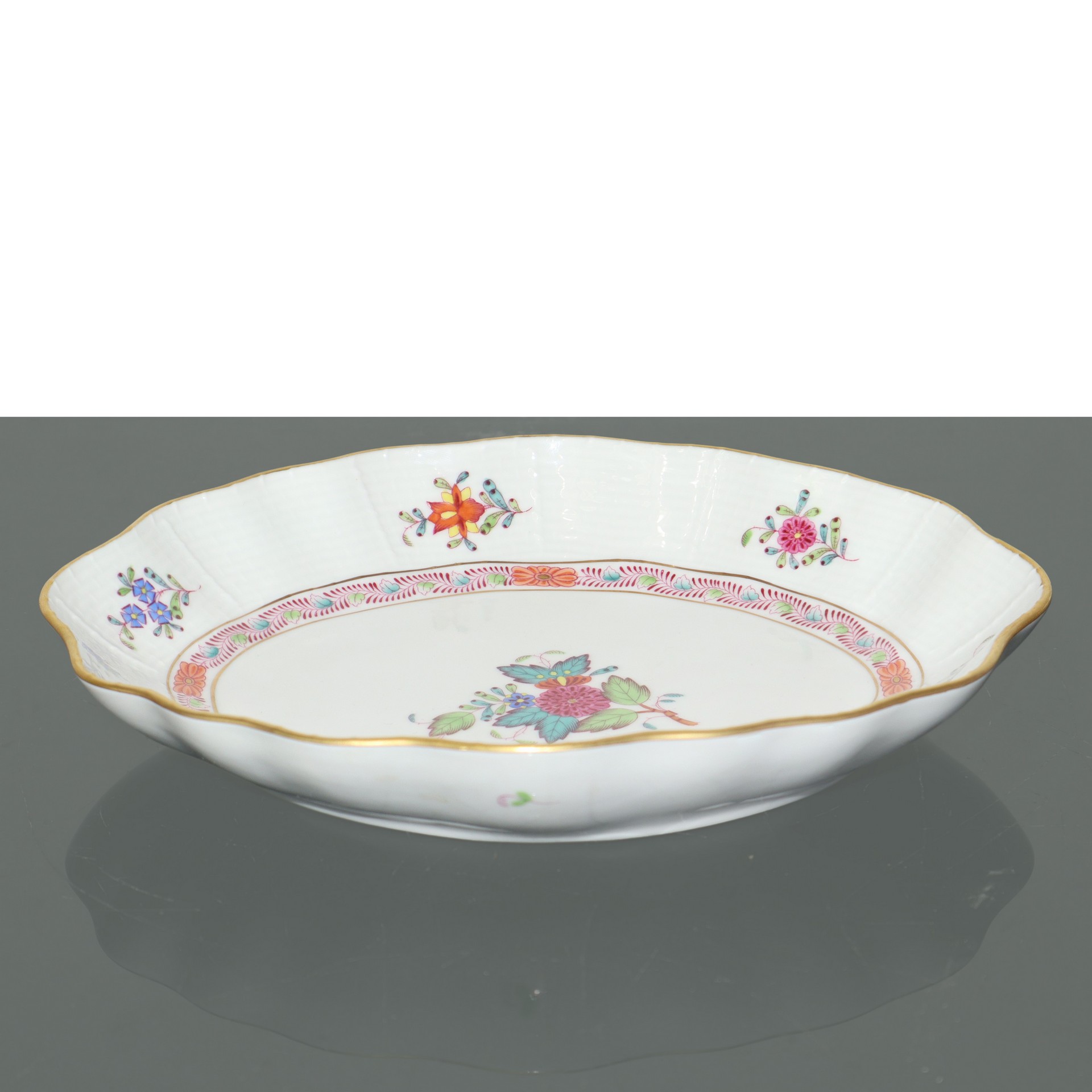 Herend Hungary (Herend 1826) - Vassoio in porcellana bianca Herend, decoro Indian Basket Multicolor, 20th century Marchio della manifattura alla base