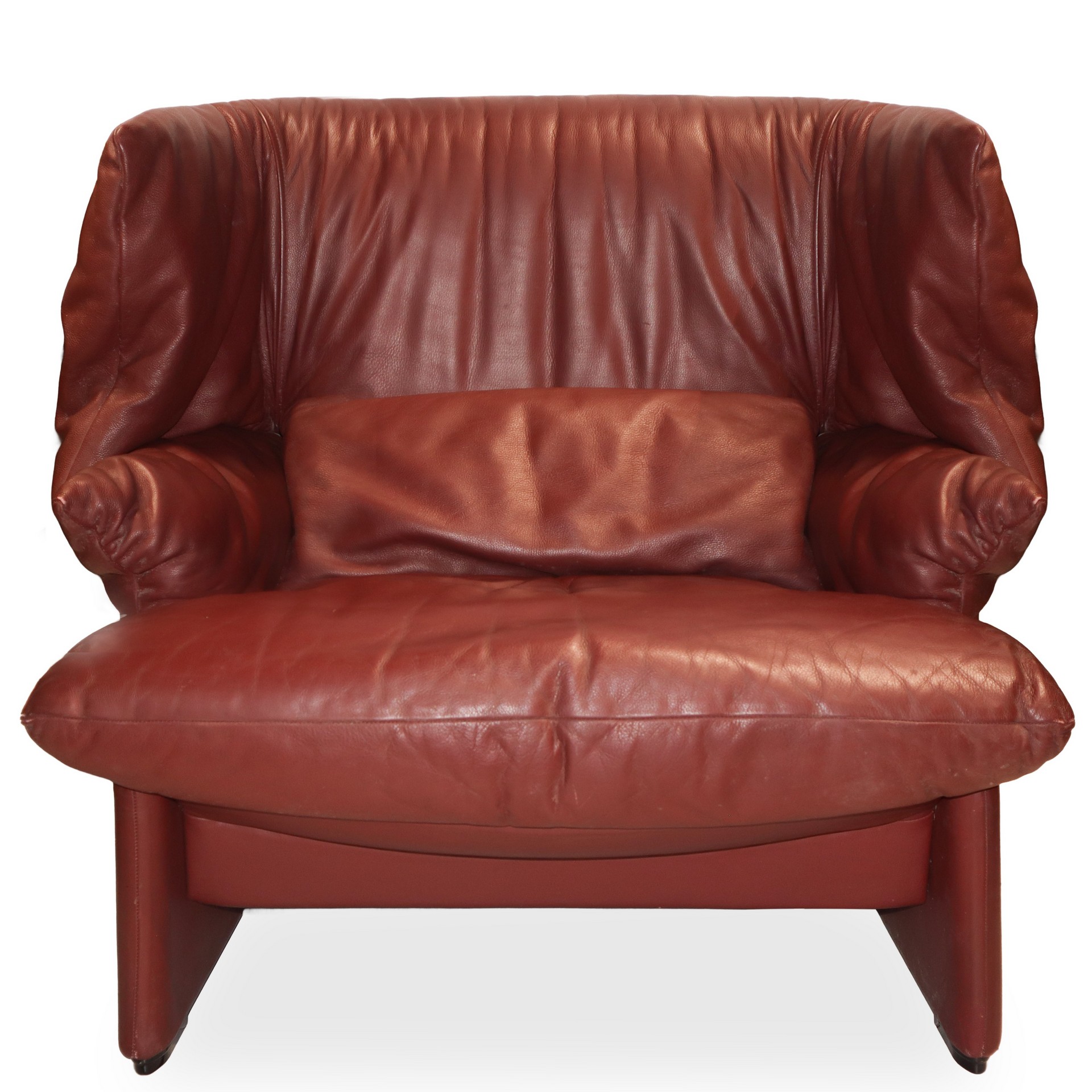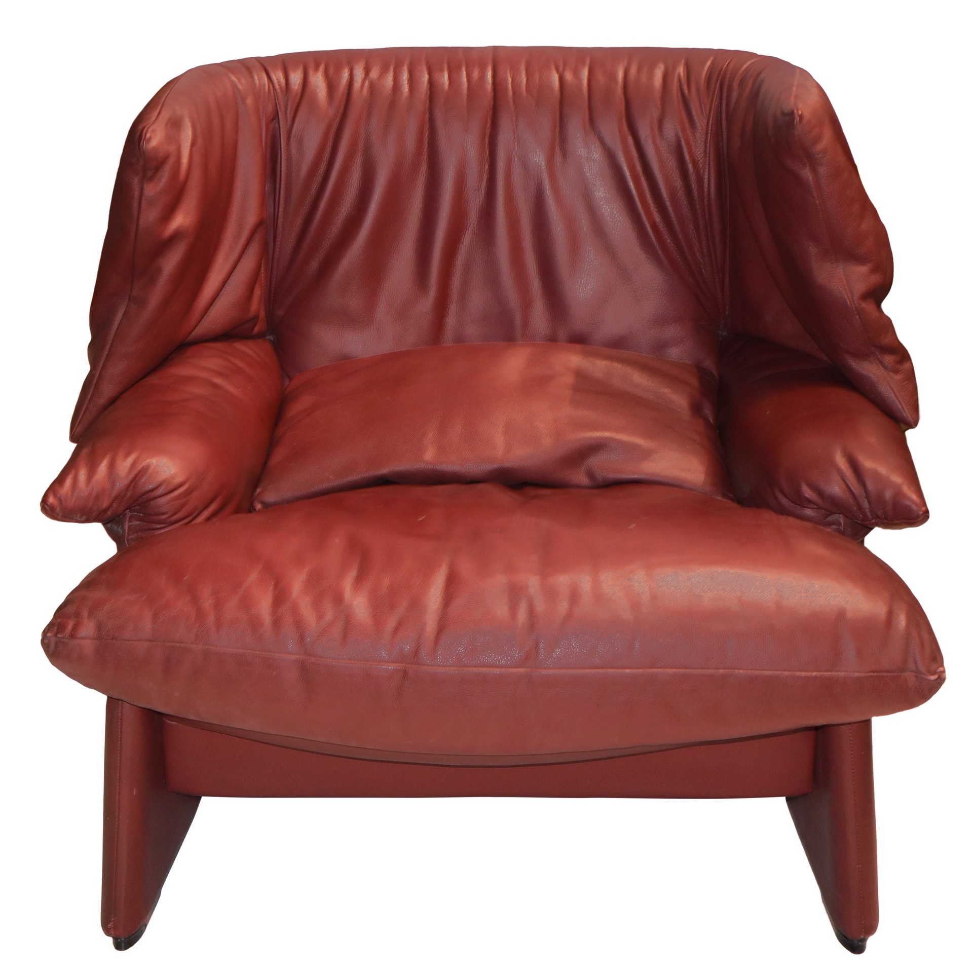 Vico Magistretti per Cassina - Coppia di poltrone modello Palmaria in pelle bordeaux h cm 88X99X86