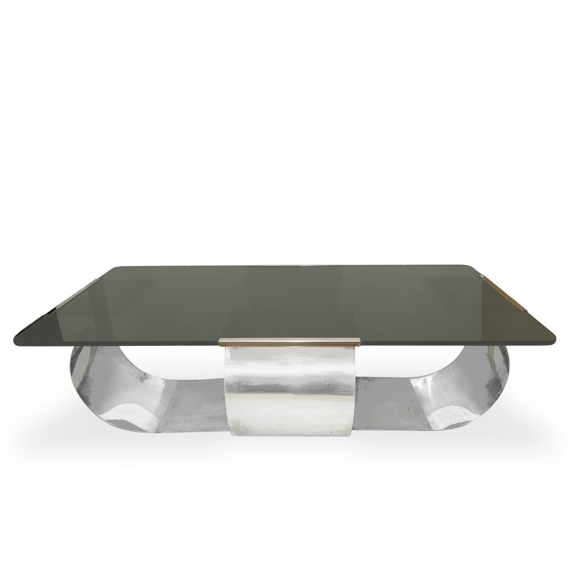François Monnet (Francia 1946) - Coffee table con piano in vetro e struttura in cristallo cromato, 1970s h cm 30X98X50 Segni del tempo