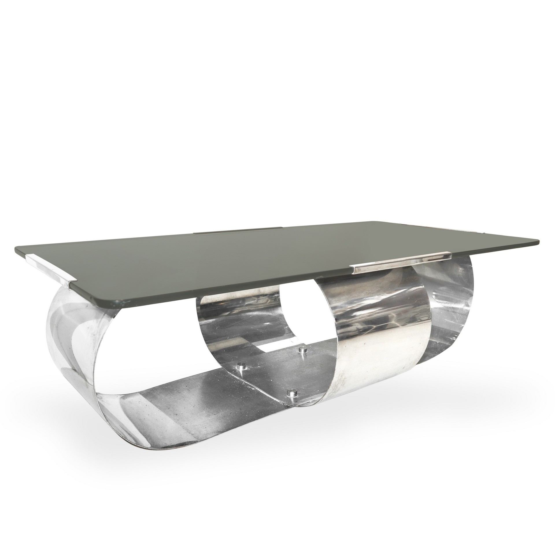 François Monnet (Francia 1946) - Coffee table con piano in vetro e struttura in cristallo cromato, 1970s