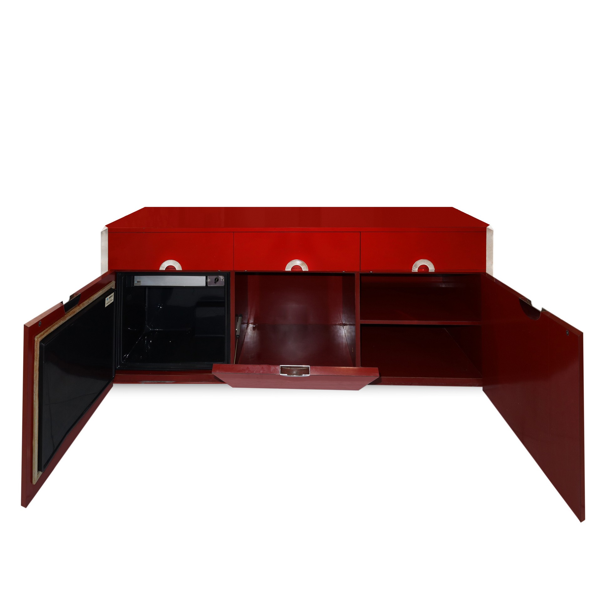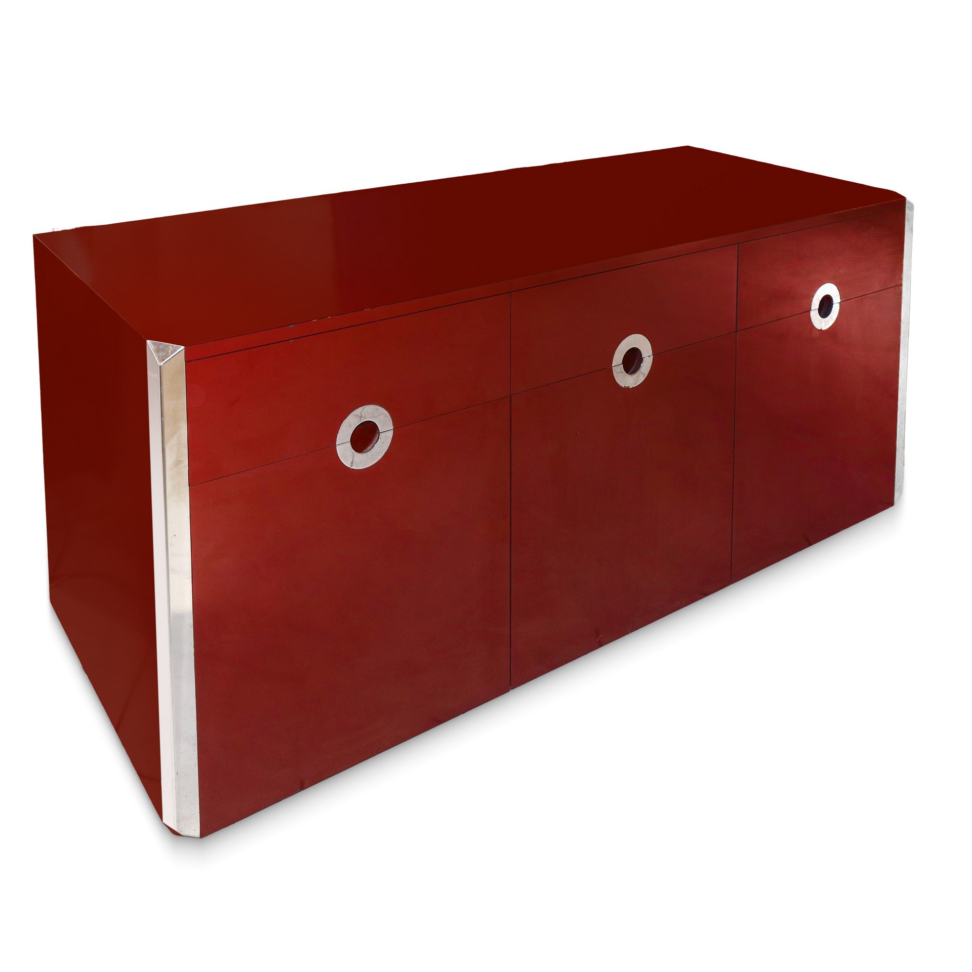 Willy Rizzo - Sideboard modello Alveo in lacca rossa e dettagli cromati, 70s