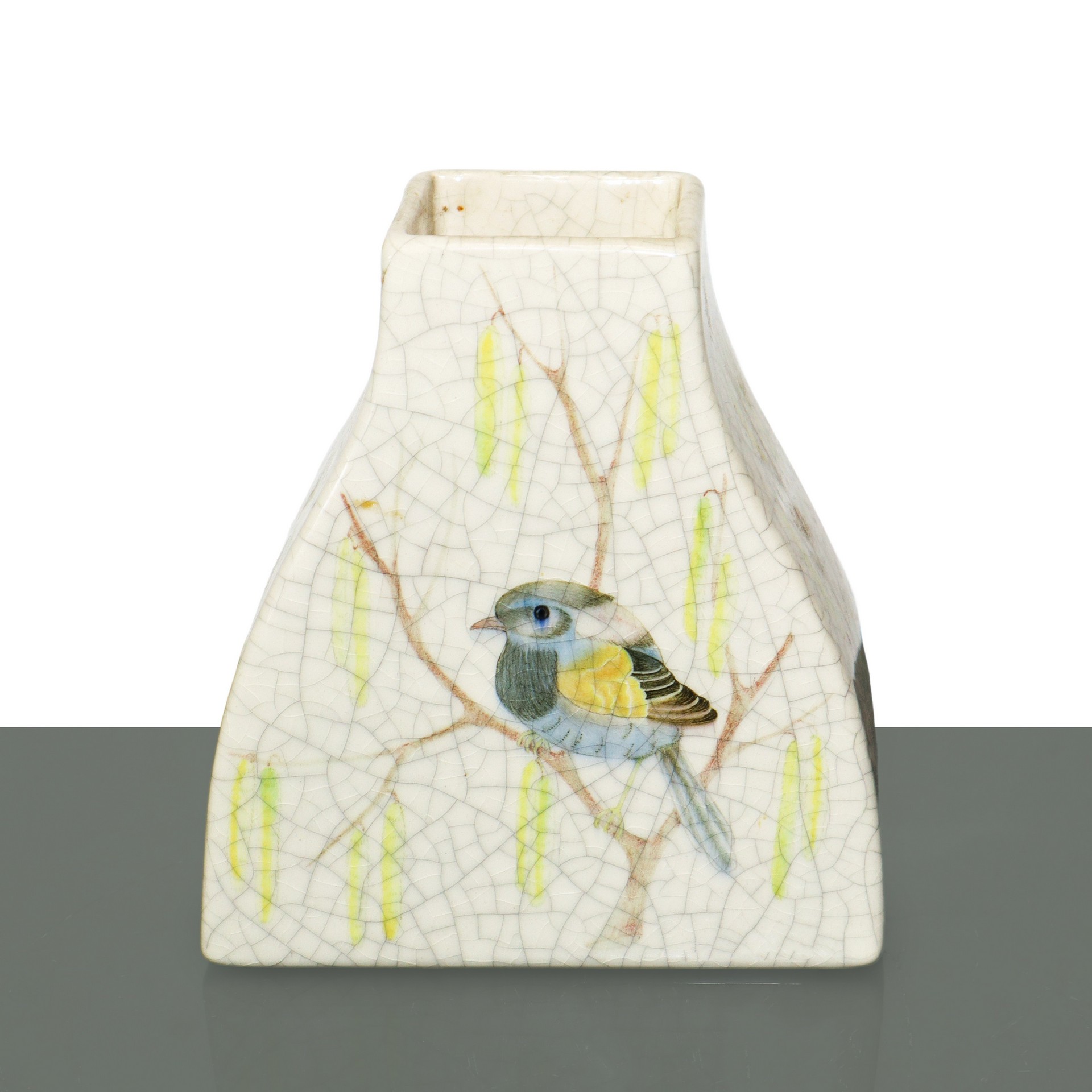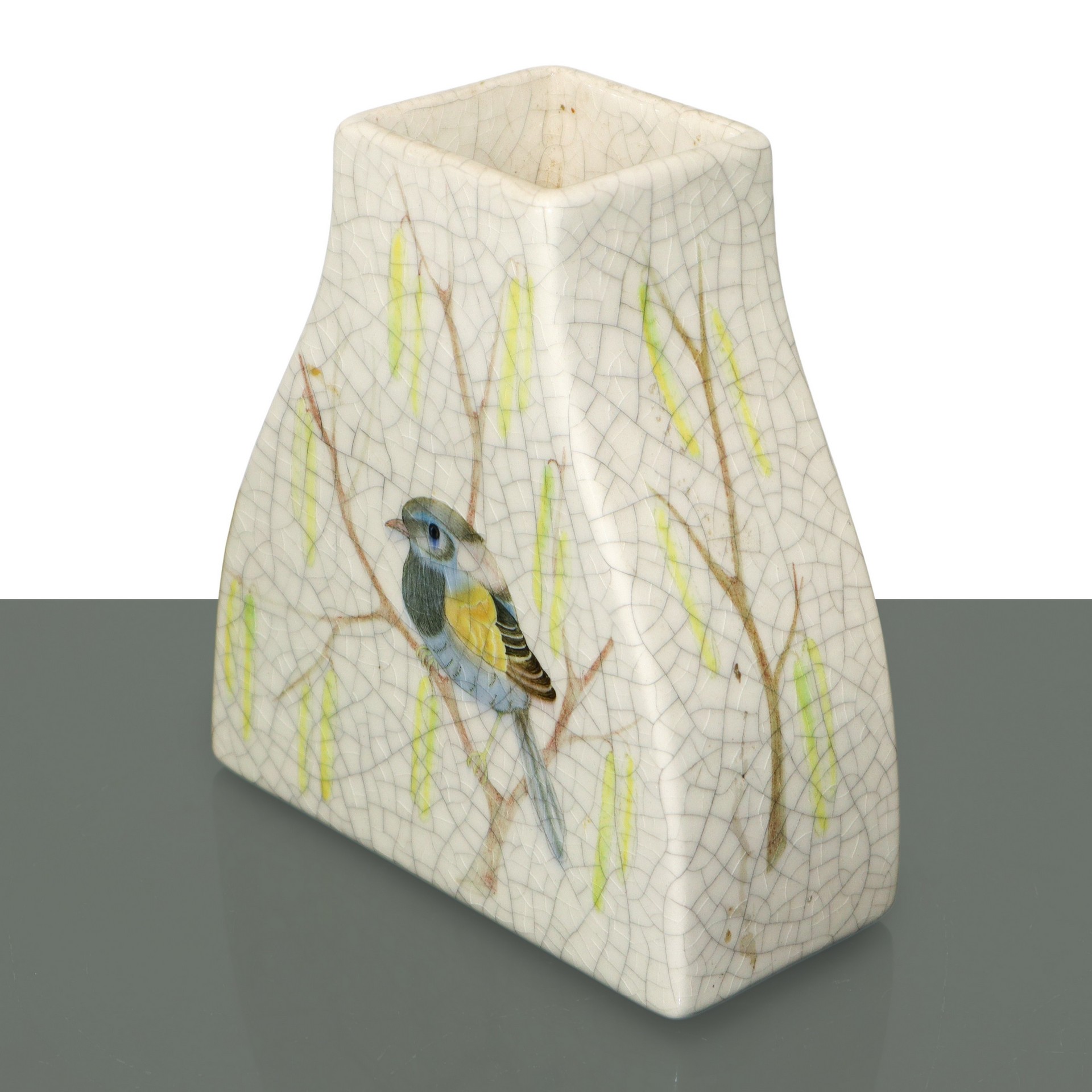 Lenci - Vaso da muro in ceramica con uccellino policromo sul fronte h cm 16 Marchio della manifattura alla base