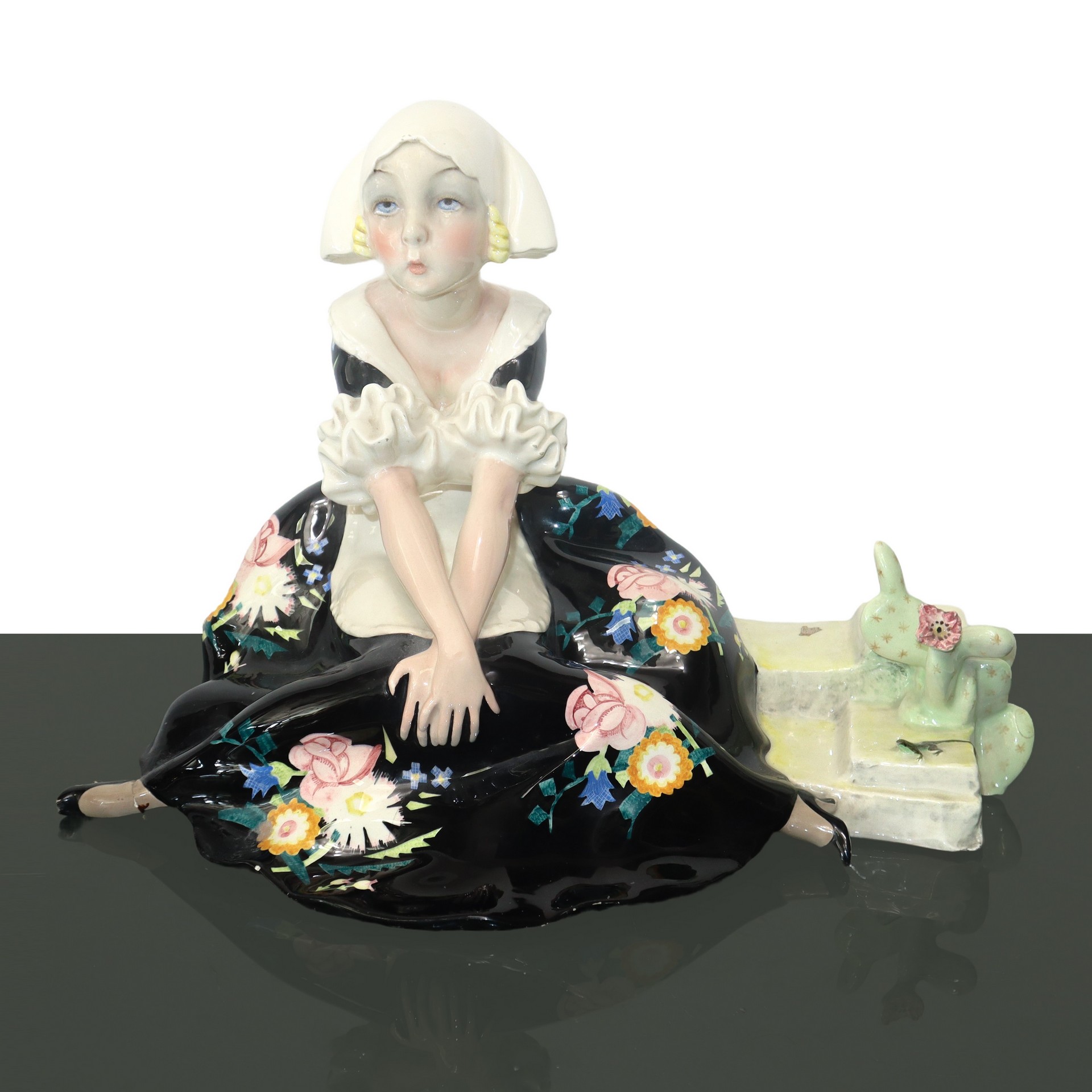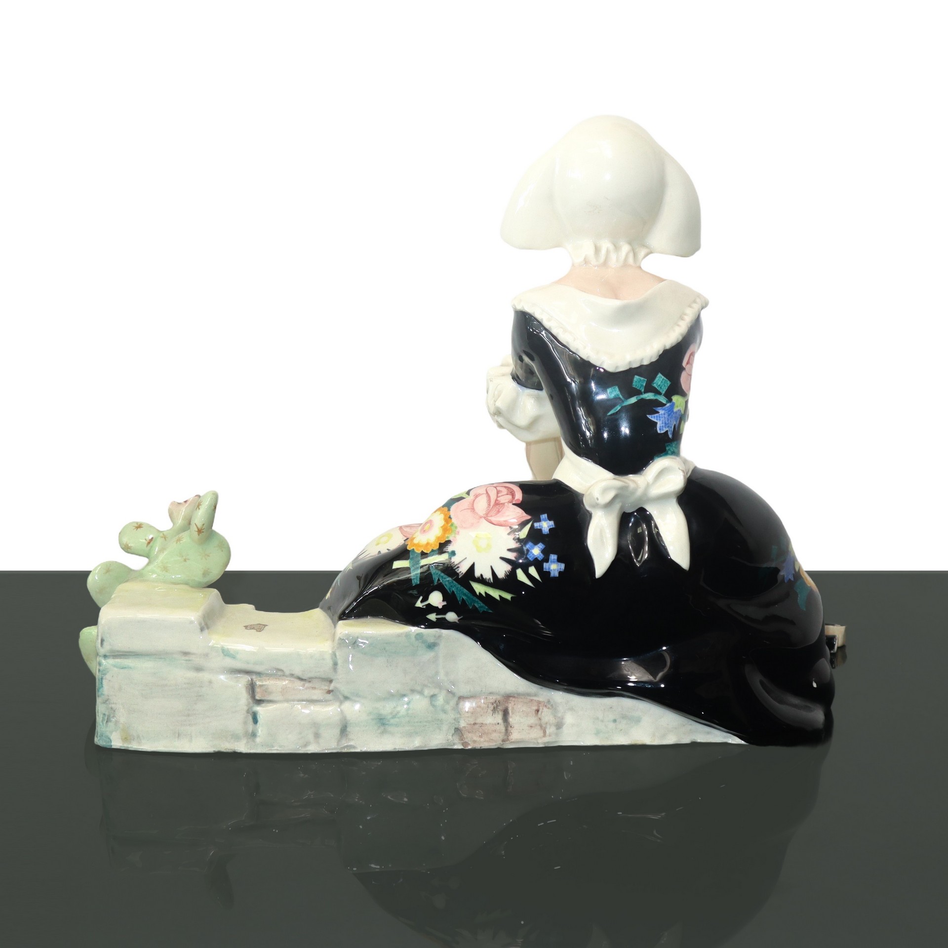 EsseVi Ceramica - Statua di fanciulla in ceramica policroma con cactus e lucertola