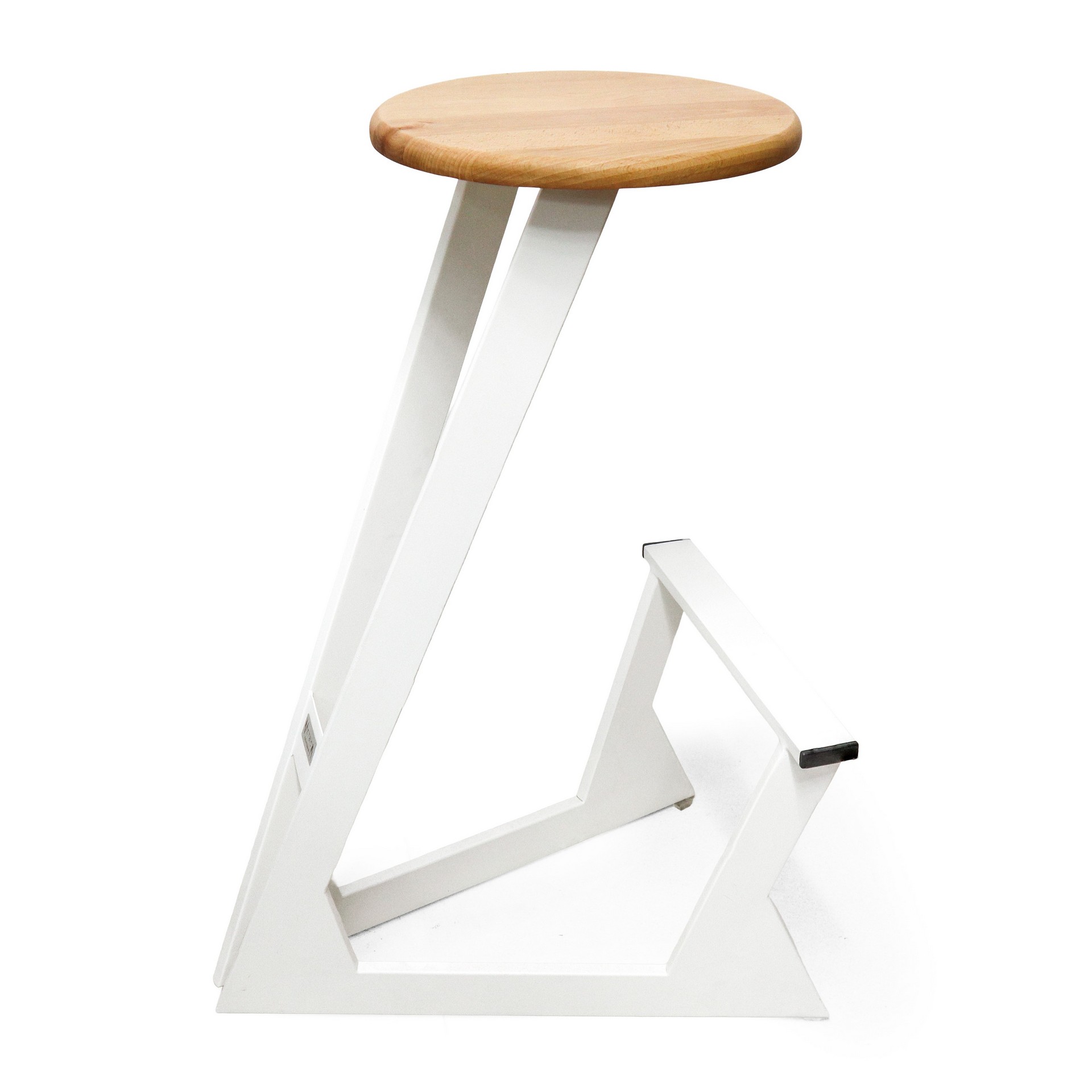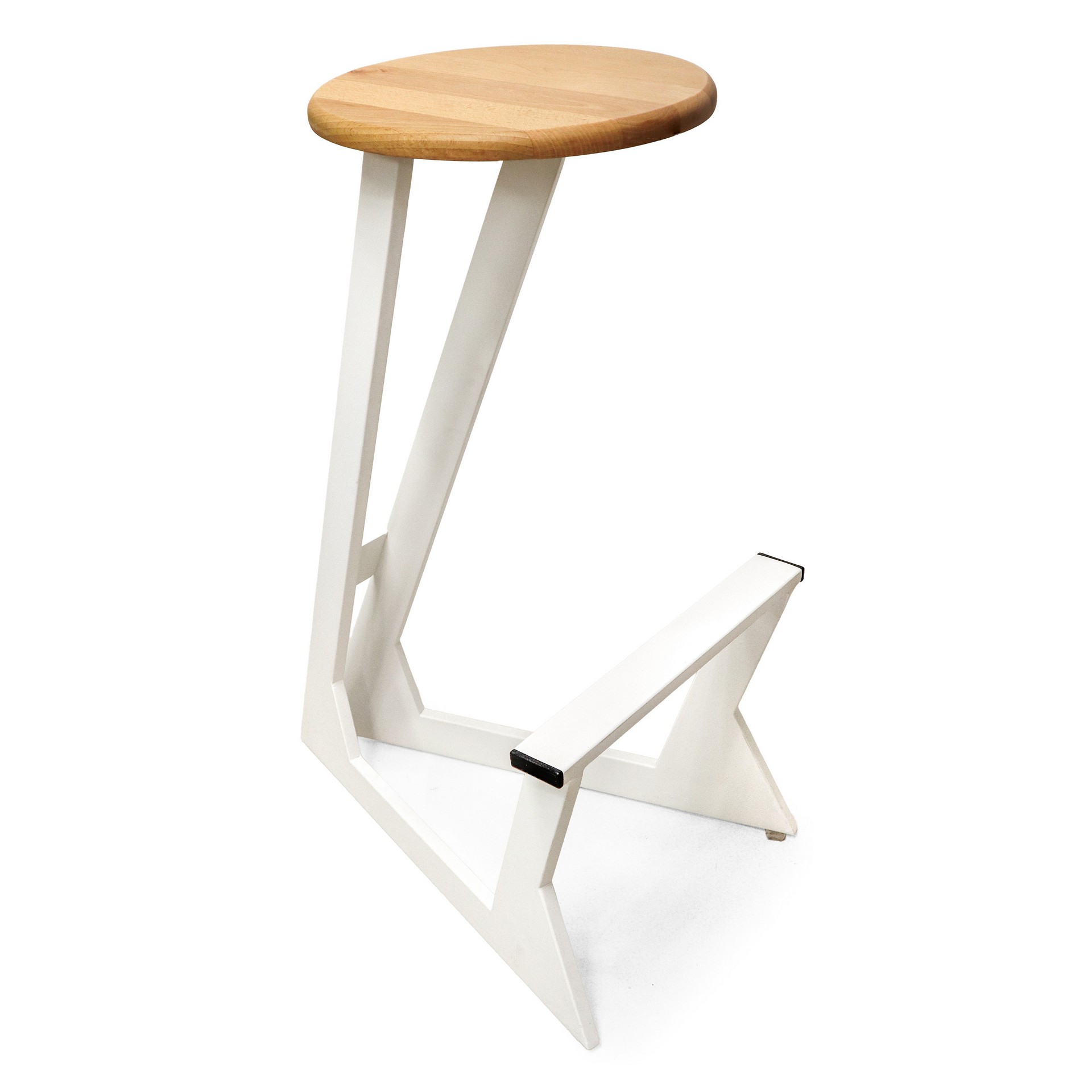 Metrica Design - Sgabello trapezio con seduta in faggio naturale e corpo in metallo laccato bianco
