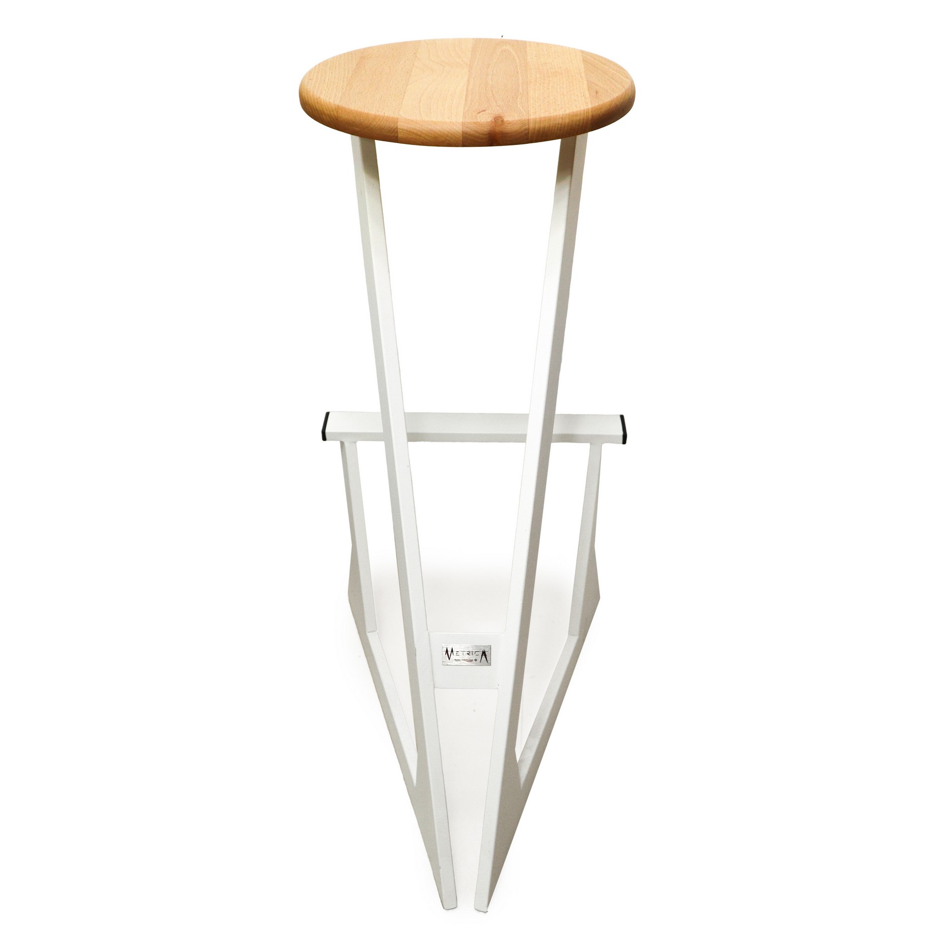 Metrica Design - Sgabello trapezio con seduta in faggio naturale e corpo in metallo laccato bianco h cm 75X37X55 Corpo in metallo seduta in faggio.