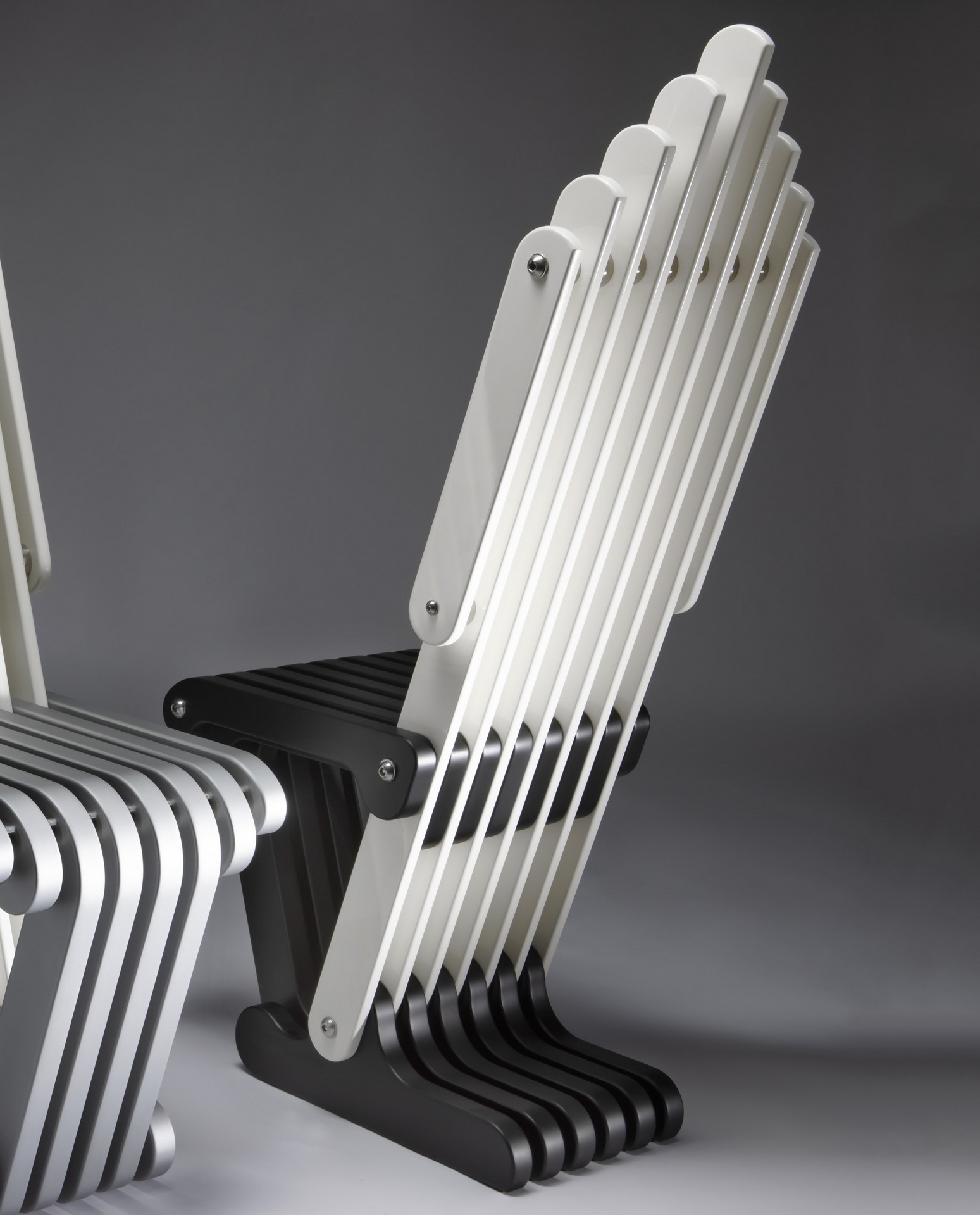 Forme non convenzionali e dalla spiccata personalità che catturano l'attenzione grazie al design elegante e la tridimensionalità superiore a quella di una seduta comune. Prodotti innovativi con linee nate al computer fra ingegneria e passione, capaci di inserirsi in qualunque ambiente di un certo livello ed arricchire quell'intimità un pò speciale che ognuno custodisce a casa propria. Il risultato di un artigianato moderno, personalizzato insieme al cliente e poi assemblato rigorosamente a mano. Uno per volta.In Mdf laccato bianco lucido sulla spalliera e nero satinato sulla seduta, giunzioni in acciaio inox.