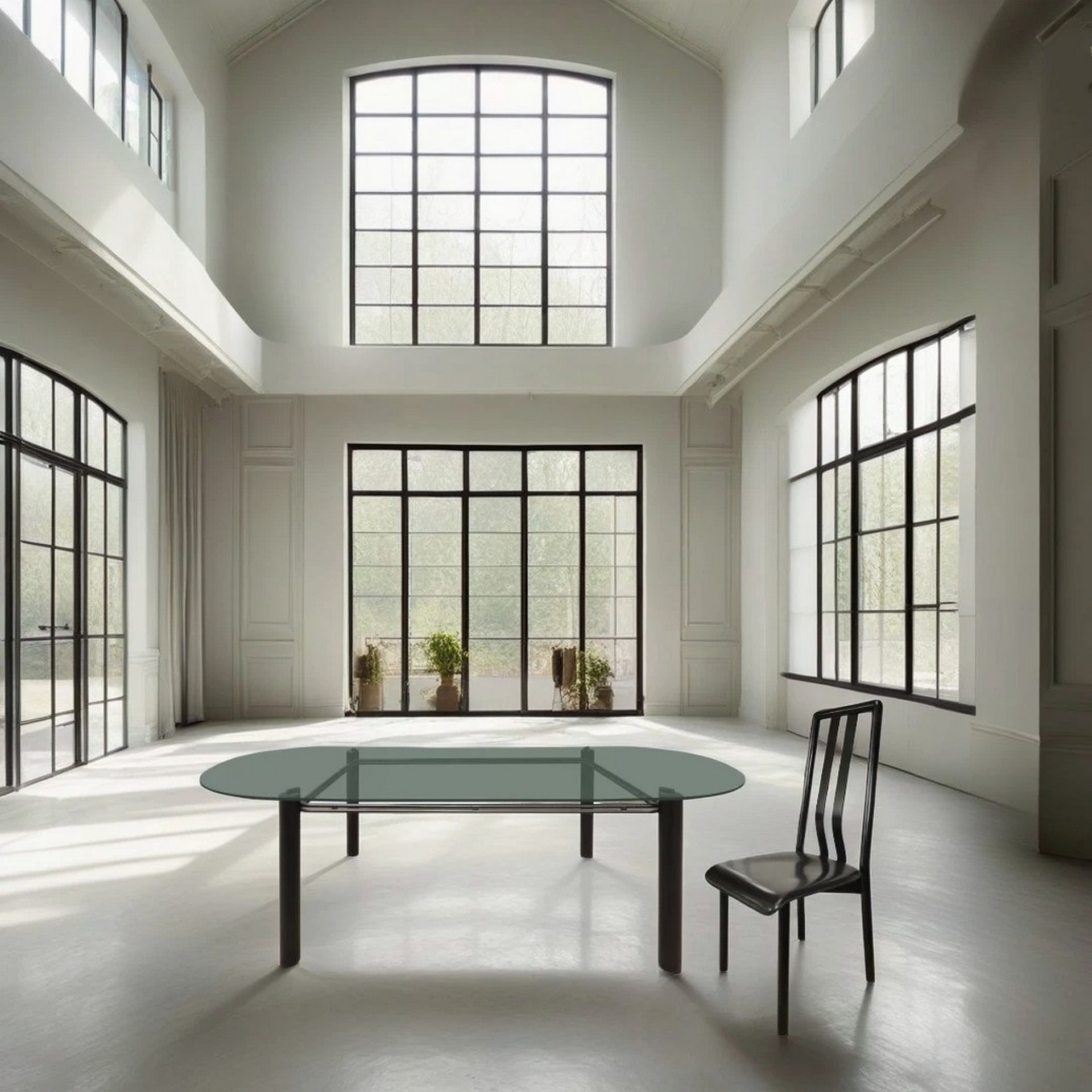 Tavolo e 6 sedie, tavolo con piano in vetro e struttura in metallo nero