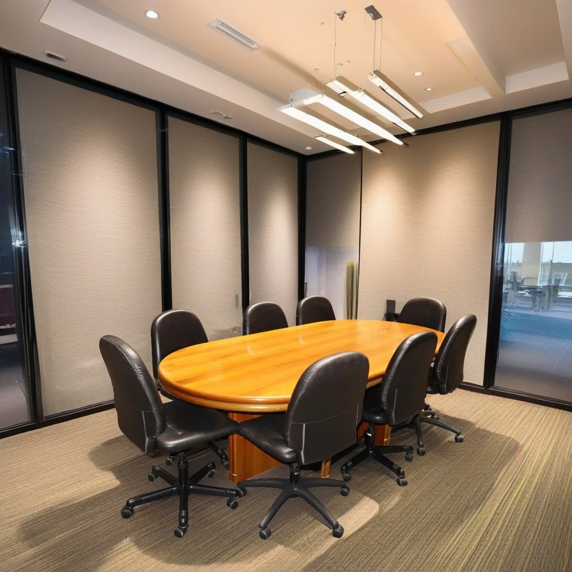 Grande tavolo da riunione con struttura e piano in legno massello più 8 sedie