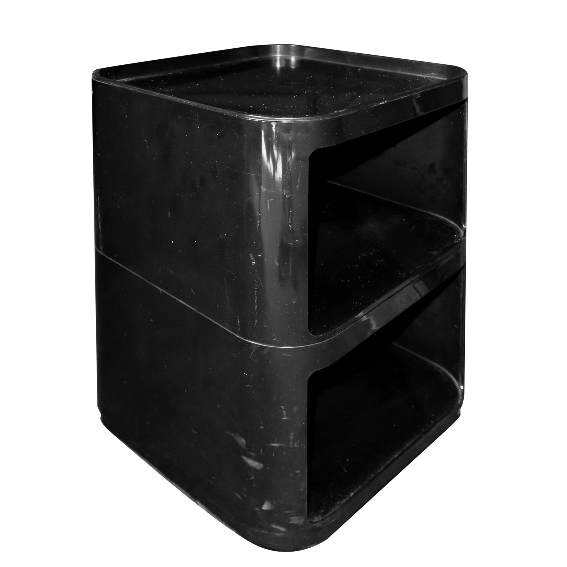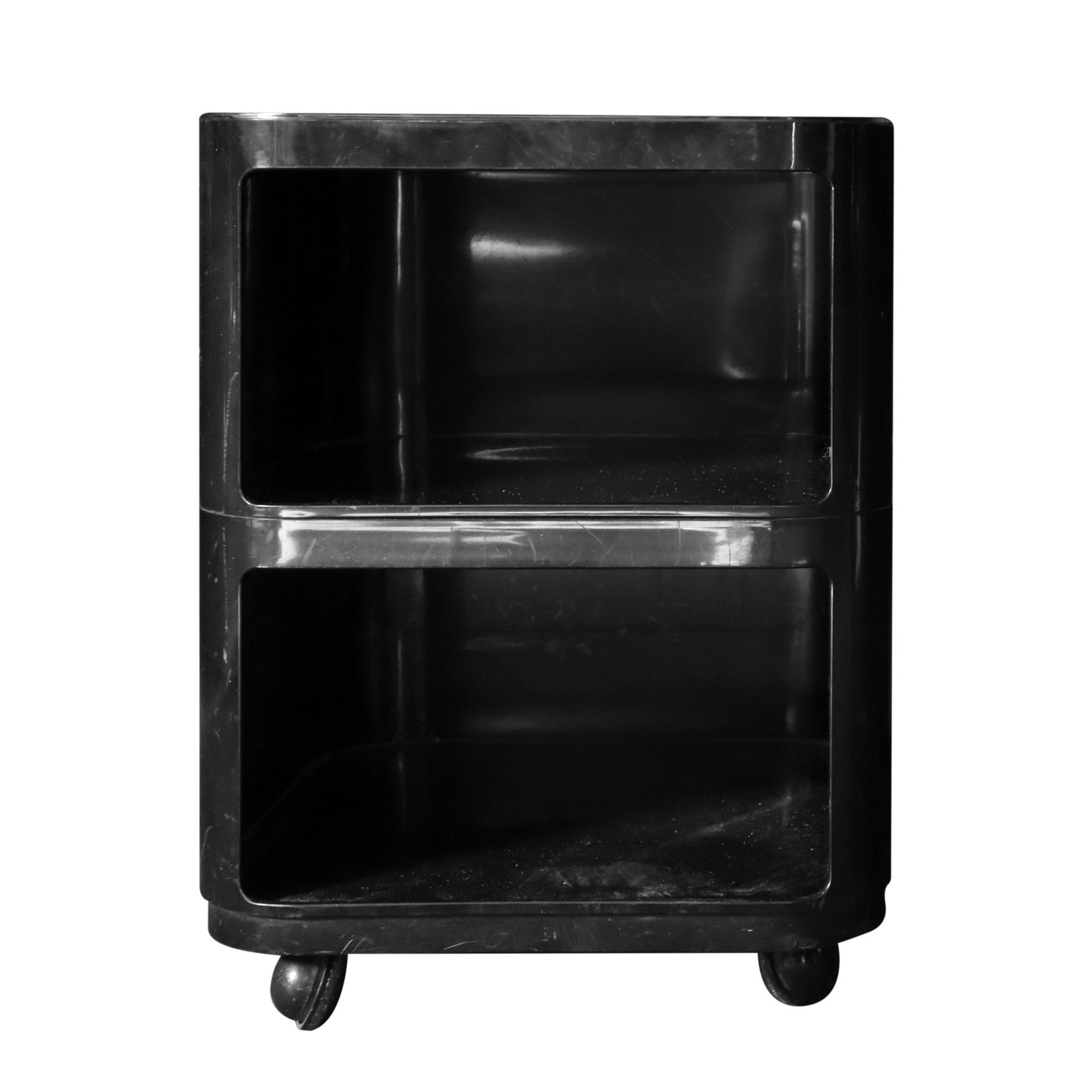 Ferrieri per kartell (Milano 6/08/1918 - Milano 22/06/2006) - Mobile contenitore in due parti, 1967-1969 h cm 49 x 38 x 38 Plastica abs nera, ruote alla base, con segni d'uso.Plastica abs nera, ruote alla base, con segni d'uso.