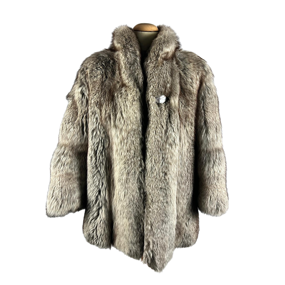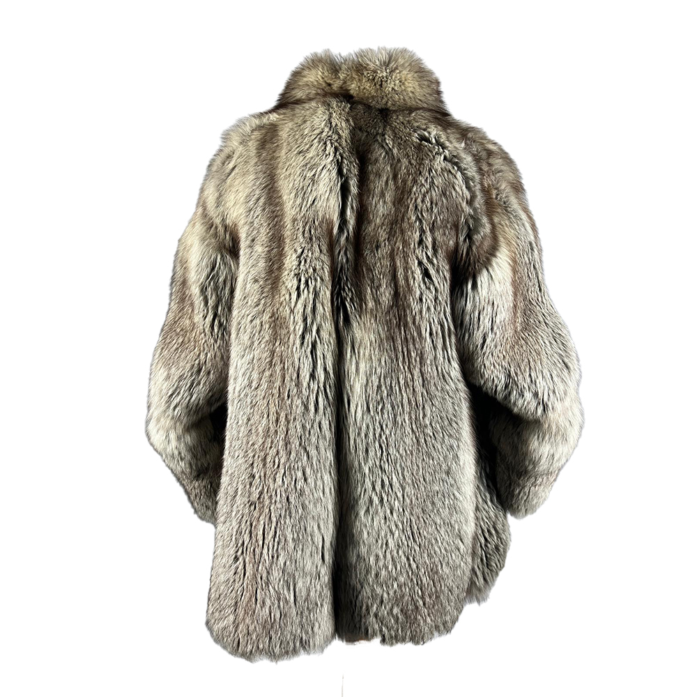 ELEGANTE CAPPOTTO IN PELLICCIA DI VOLPE NATURALE interno foderato in raso grigio etichetta pellicceria vella boutique Palermo anni 70-80 Italia