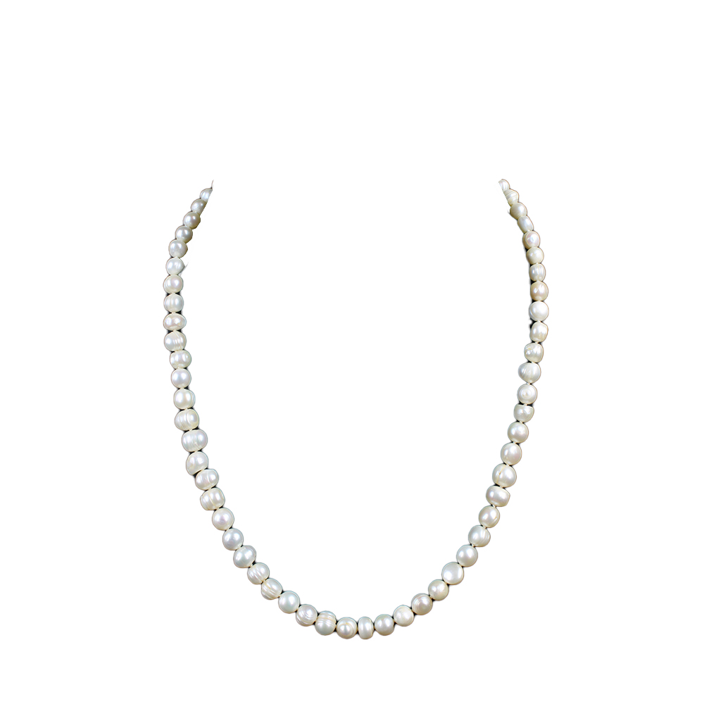ELEGANTE COLLANA COMPOSTA DA una serie di perle coltivate a forma irregolare ,con superfici naturali mosse .chiusura circolare in oro bianco 18 kt lunghezza 70 cm diametro perle variabile Italia xx secolo cm 34