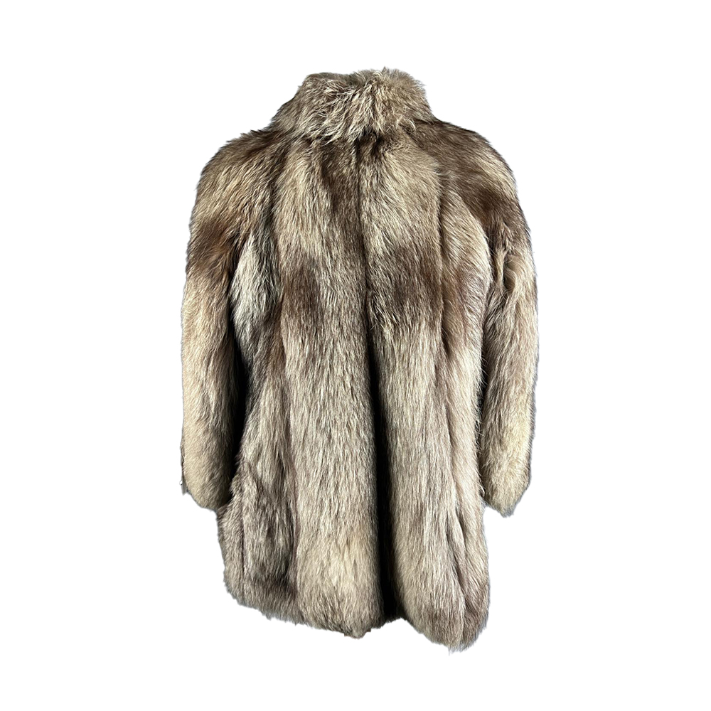 CAPPOTTO IN PELLICCIA DI VOLPE NATURALE CHIARA "GOLDEN FOX" TAGLIA IT 46/48 tonalità dorate con riflessi marrone caldo, collo sciallato e maniche lunghe, interno foderato in raso. Italia anni 60-80